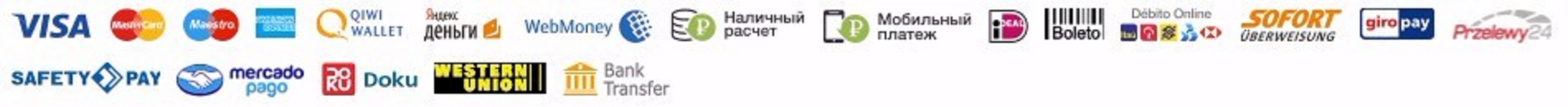 Мы поддерживаем следующие способы оплаты. Все платежи, сделанные на AliExpress, обрабатываются Alipay. Поддержка Paypal