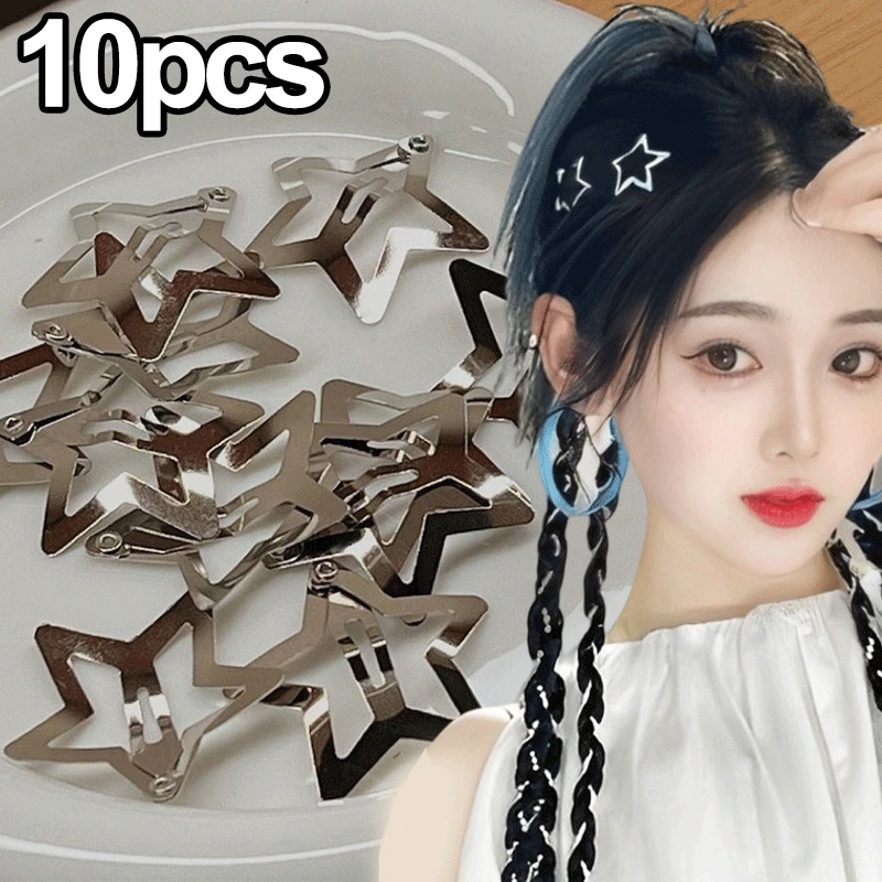 1/10 шт. серебряные заколки для волос со звездами BB, женские милые металлические заколки для волос со звездами, боковые заколки, захват для волос Y2K, аксессуары для волос, головной убор