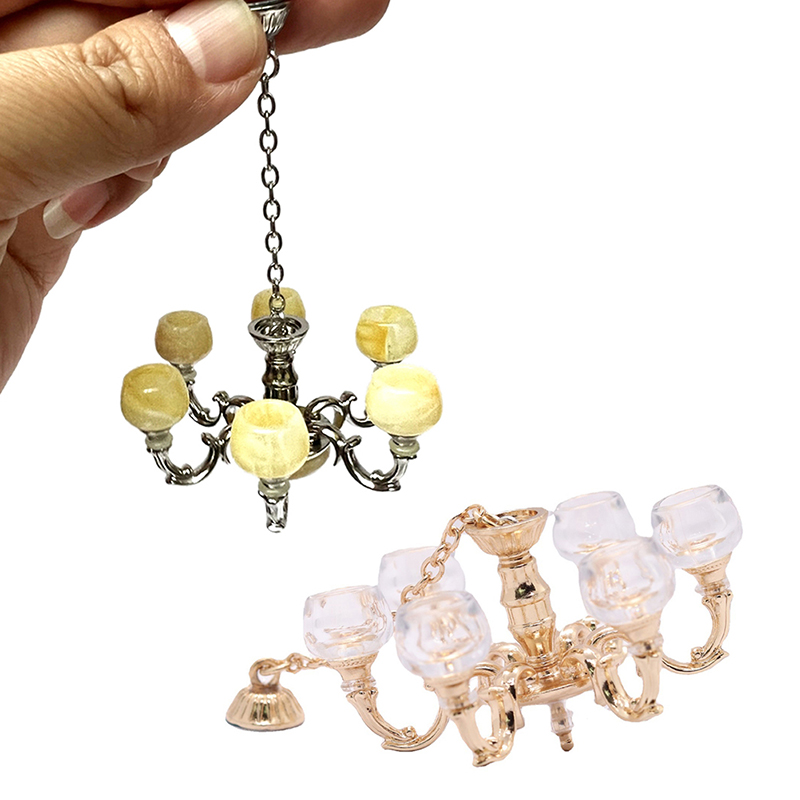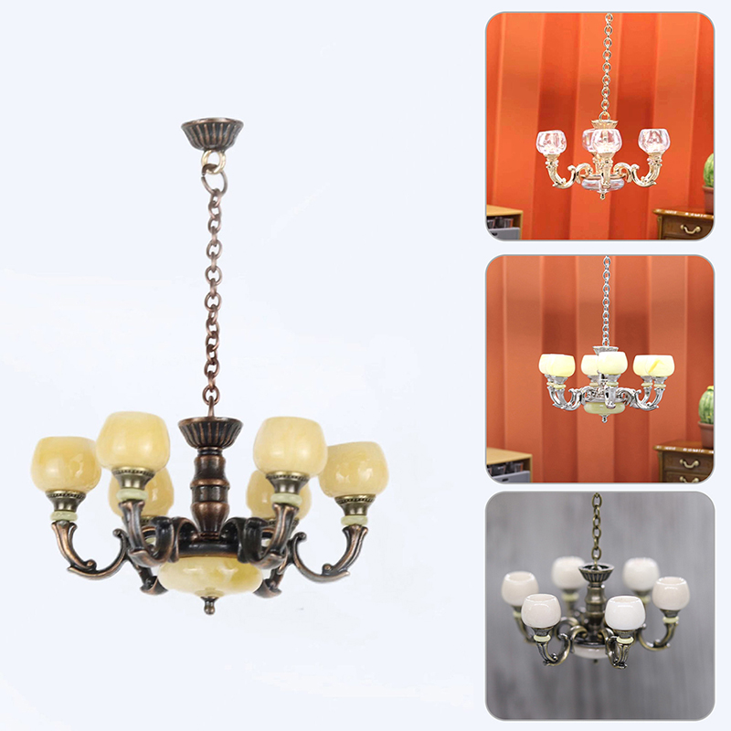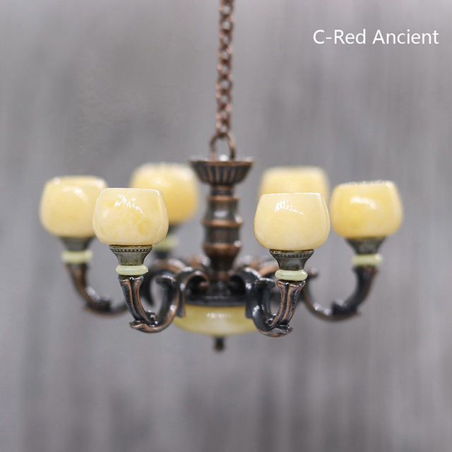 1:12 миниатюрная ретро-Люстра для кукольного домика, рабочая потолочная лампа, модель детской мебели, декор для гостиной и сцены