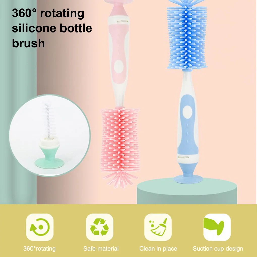 1 2 щетки для детской бутылочки, мягкая щетка для мытья сосков, 360 градусов, съемный карман для путешествий, товары для уборки дома, синий цвет