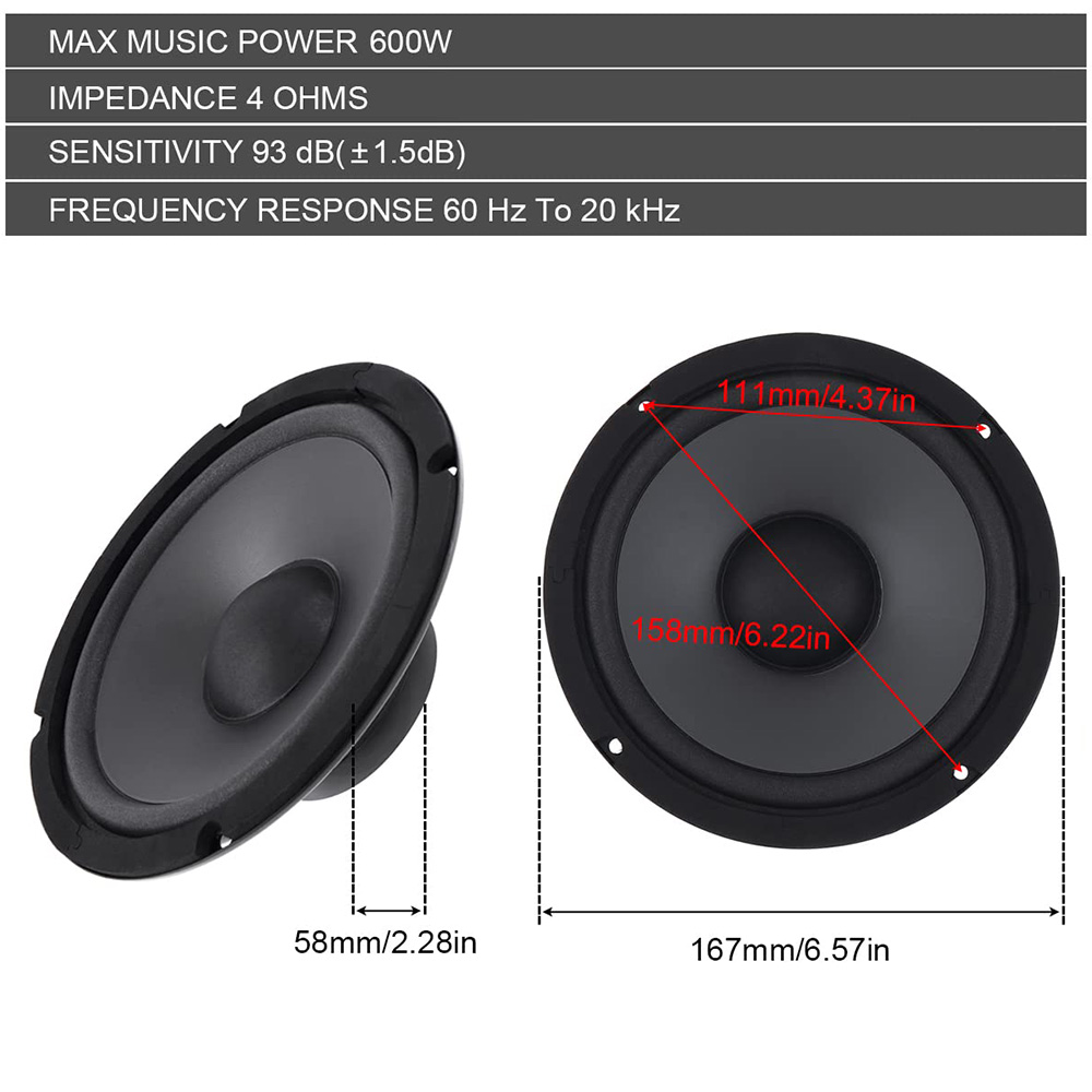 1/2 шт., автомобильный коаксиальный динамик, 6,5 дюйма, 600 Вт