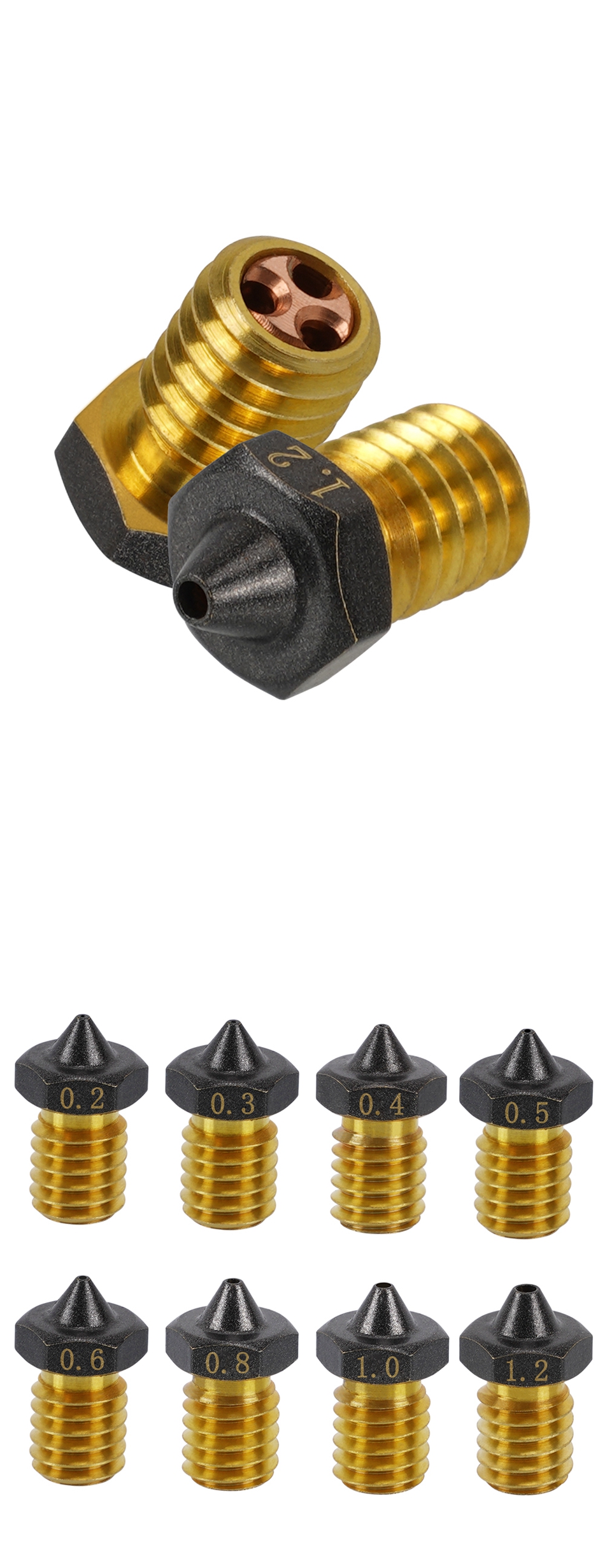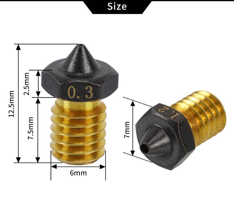 1/2 шт., латунные антипригарные насадки для 3D-принтера, 0,3/0,4/0,8/1,2 мм