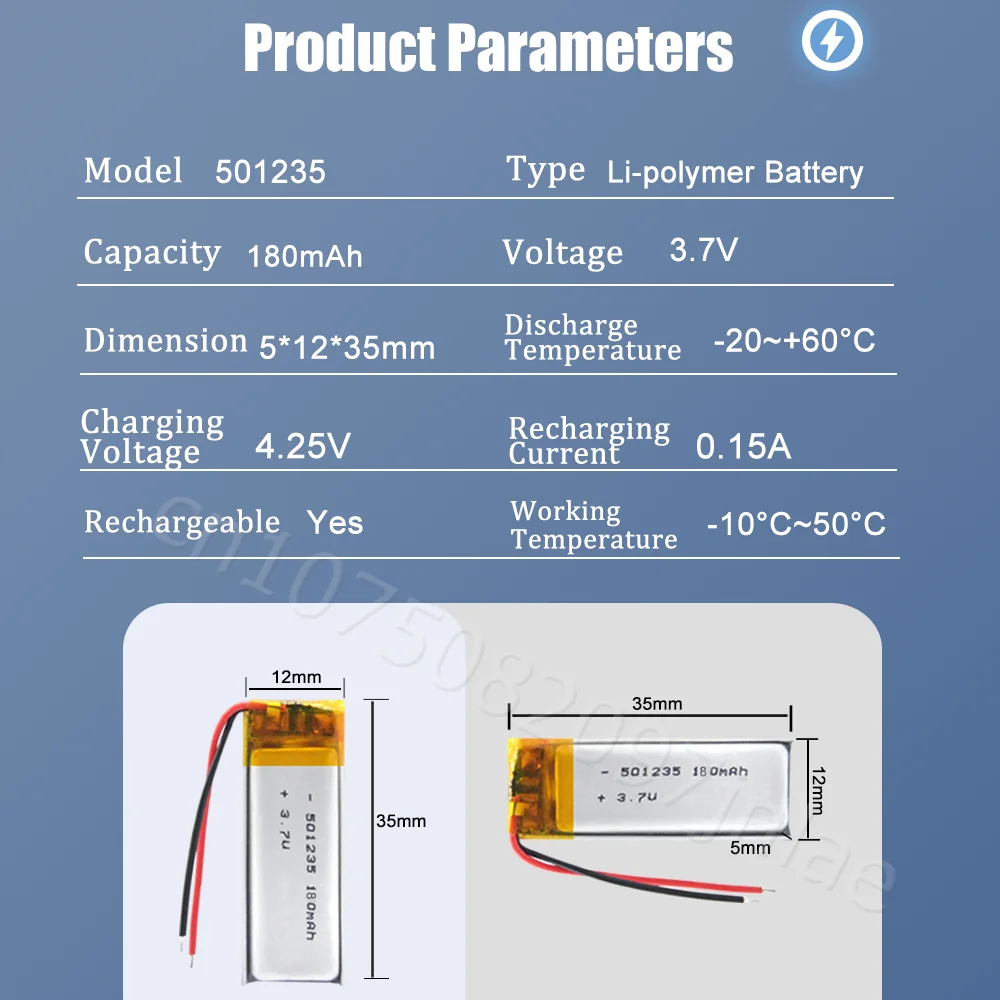 1-2 шт. 3,7 В 180 мАч 501235 051235 литий-ионный Литий-полимерный аккумулятор для MP3 MP4 MP5 GPS Bluetooth динамик умные часы