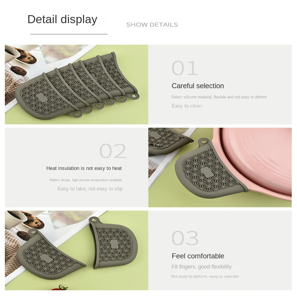 1. Он изготовлен из силиконового материала, мягкого Q-bomb, теплоизоляции, и не легко сжигать руки. Он заботится о ваших руках, а красота и простота использования сосуществуют, чтобы создать вашу хорошую жизнь, хорошие инструменты и насладиться удовольствием от кухни