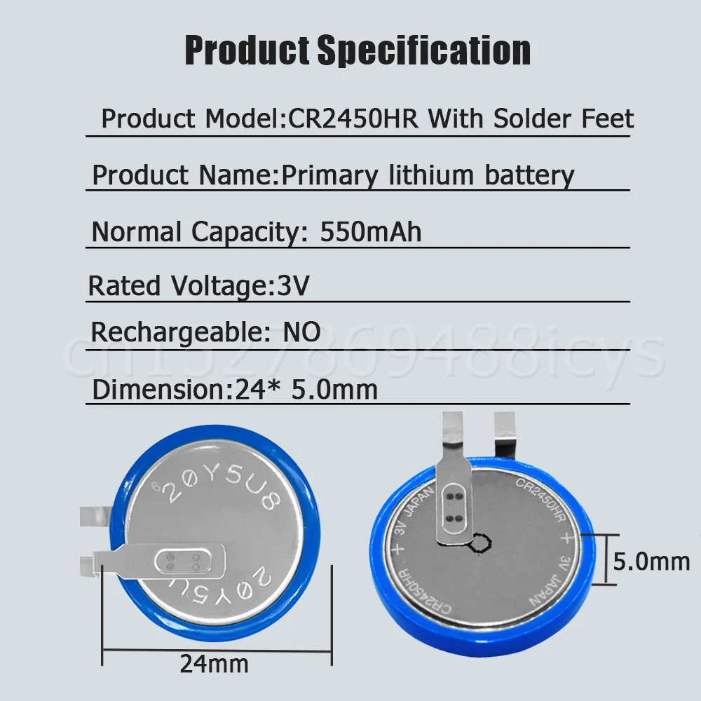 1-2PCS Eaxell CR2450HR CR2450 2450 3V High-temperature Lithium Battery For SAO-T23 Car Tire pressure Monitoring Button Cell