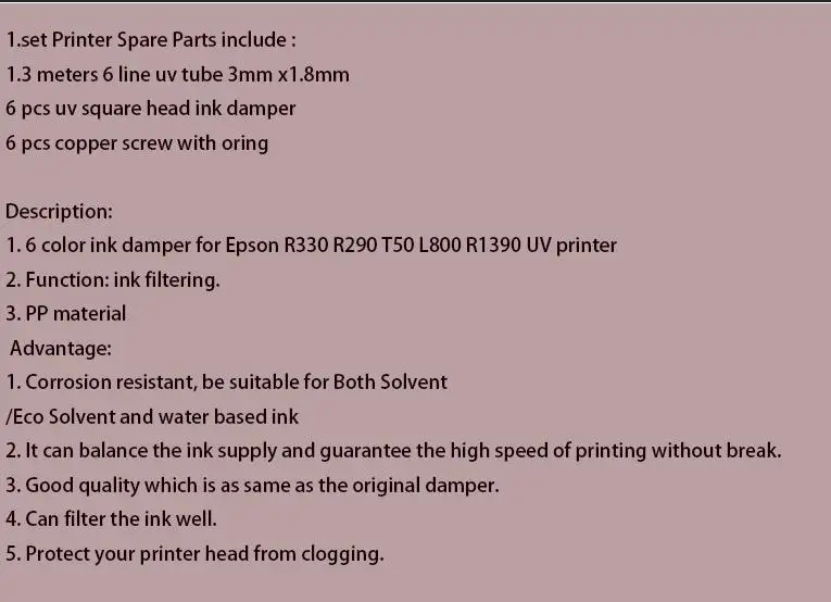 1,3 м трубка для УФ-чернил шланг, 6 цветов с УФ-квадратом, небольшой демпферный винт, гайки, oring для Epson R330 R290 T50 L800