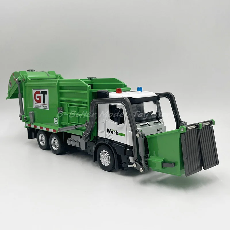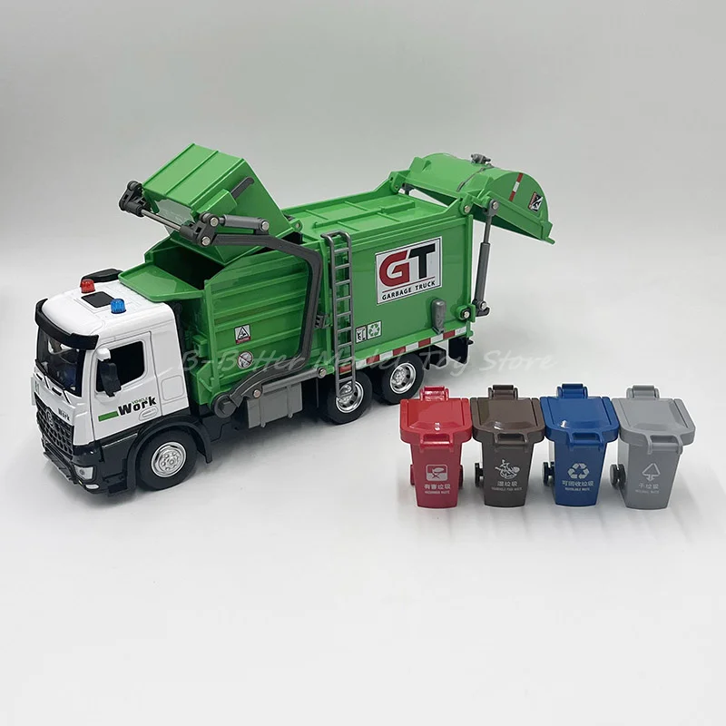 1:32 Литая под давлением металлическая модель игрушечного санитарного мусоровоза Миниатюрная копия со звуком и светом