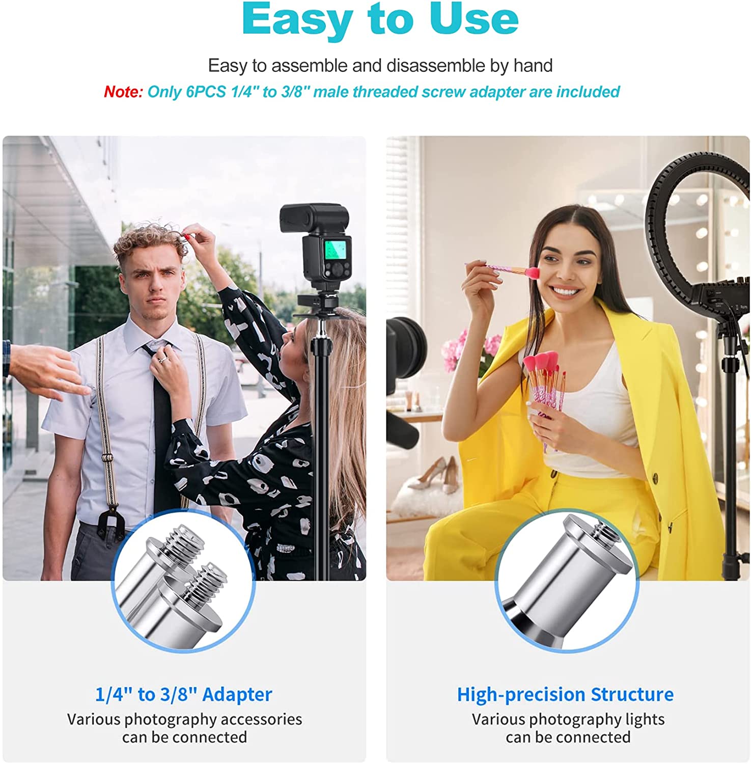 Этот мужской кран можно прикрепить к различным аксессуарам для фотосъемки, таким как камеры, адаптеры горячего/холодного башмака, Шаровые Головки, приемники беспроводной вспышки, триггеры и многое другое.