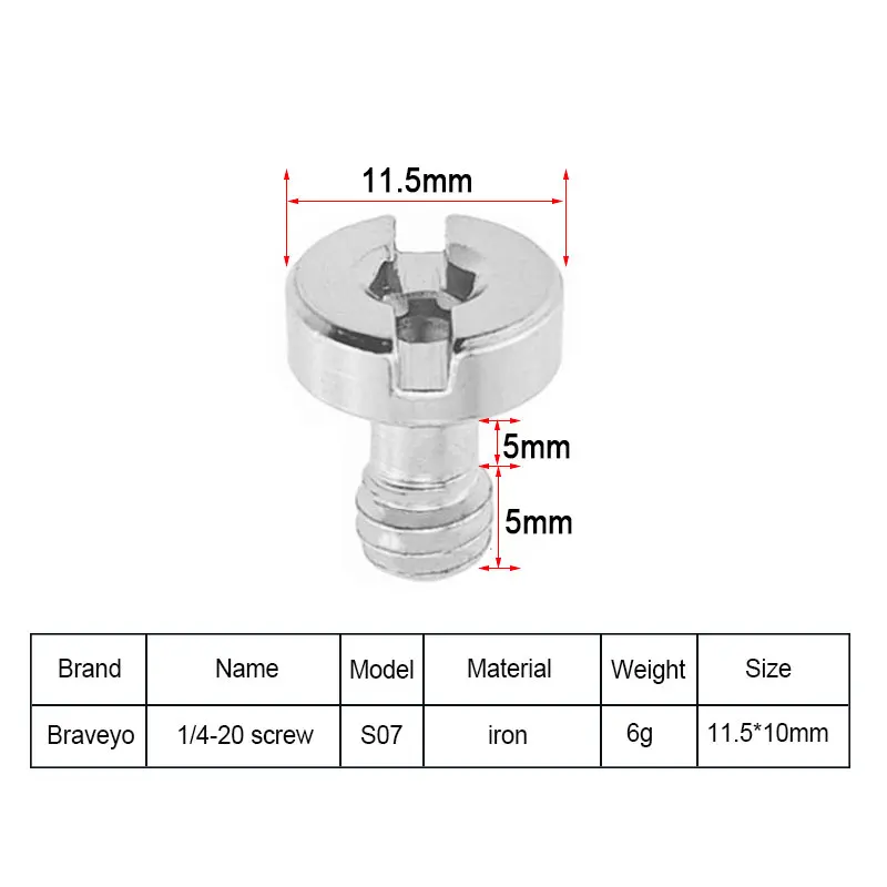 Quick Release Plate Screw 1/4 Inch Camera Screw Adapter Round Head Tripod Ballhead Mount Photography Accessories For Dslr Fixed