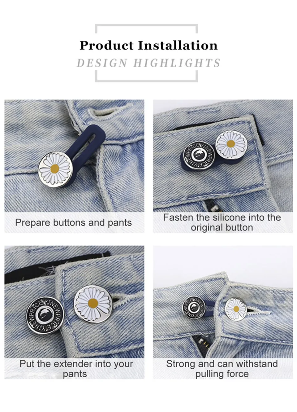 6. Пояс меняется на большой размер, требуется всего один шаг, гвоздь съемный, и его можно использовать повторно. Эластичная удлиненная Пряжка уникальна, экономична и модна. Изготовлен из высококачественного материала, прочен и может использоваться как пуговица для джинсов.