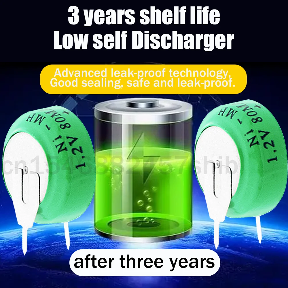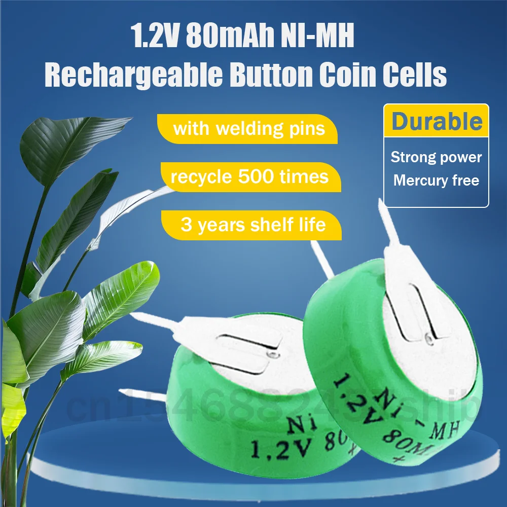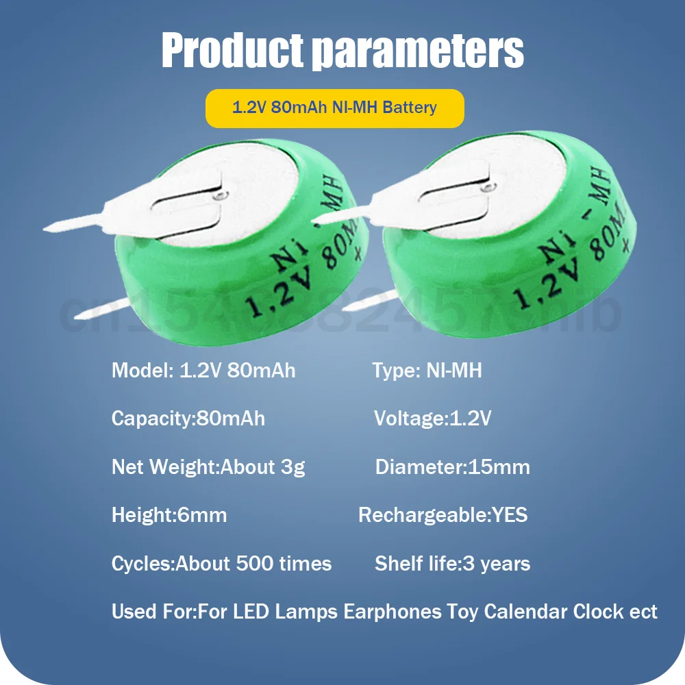 1-8 шт. 1,2 в 80 мАч Ni-MH Ni MH аккумуляторные батареи с припоем для электрических игрушечных часов, таймер, светильник, перезаряжаемый кнопочный элемент