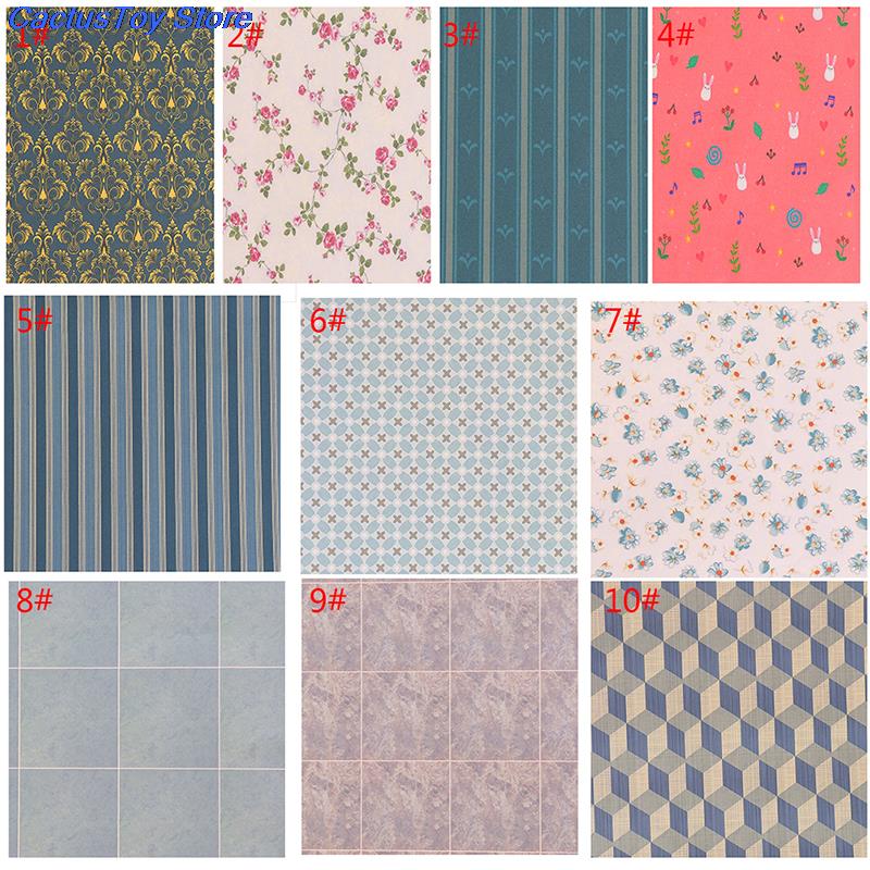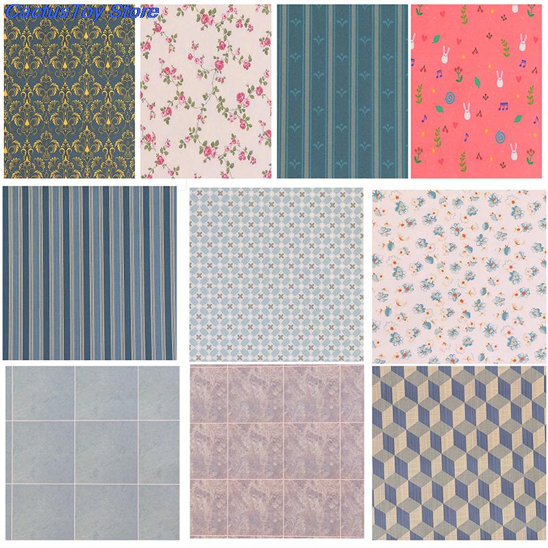 1: 9 DIY кукольный домик A4(21x30 см) кухня ванная комната гостиная спальня напольные милые обои для кукольного домика декоративные аксессуары
