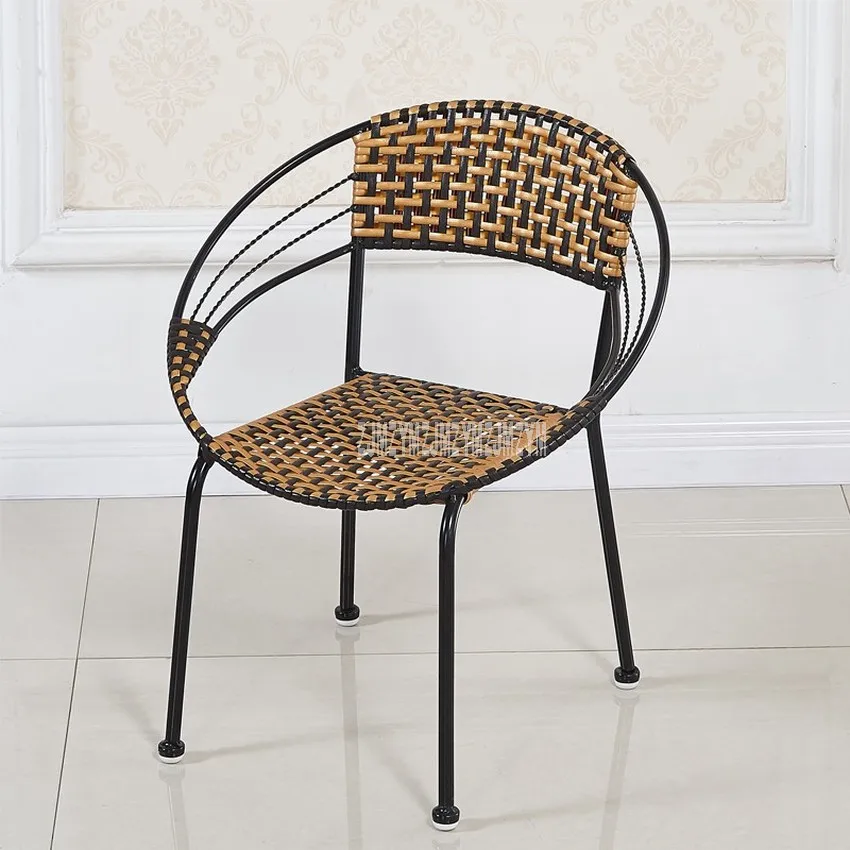 1 комплект, 2 шт. плетеный стул из ротанга для отдыха, простая стальная рама из ротанга PE
