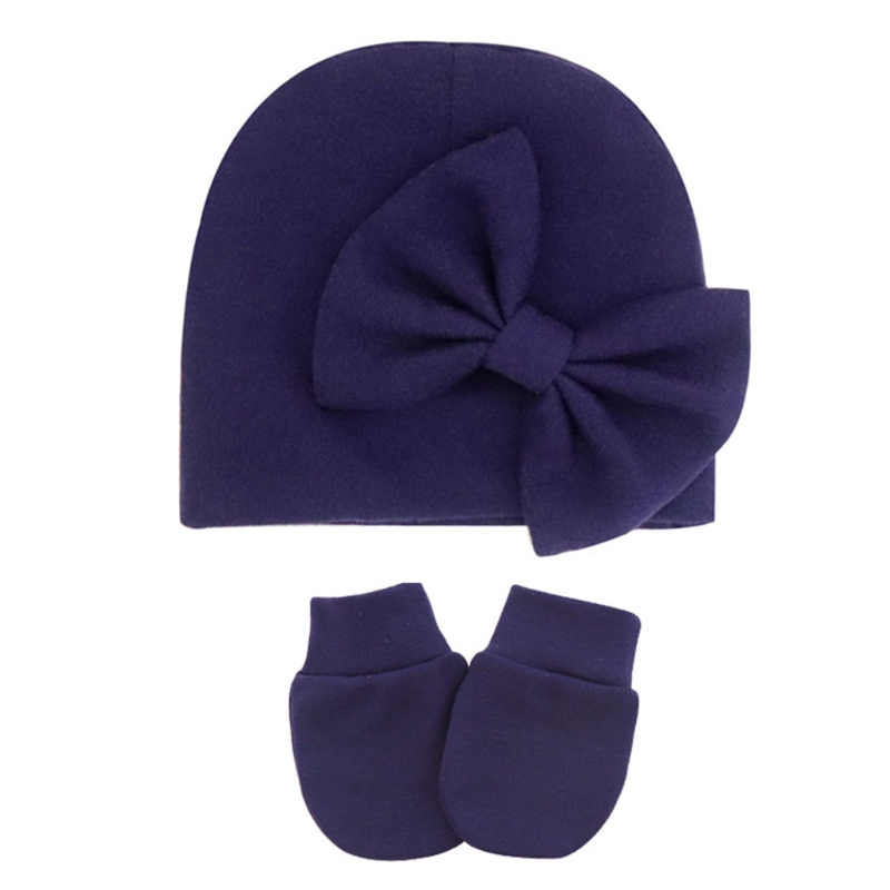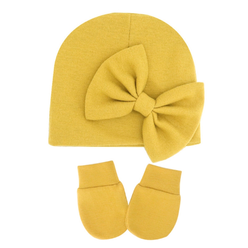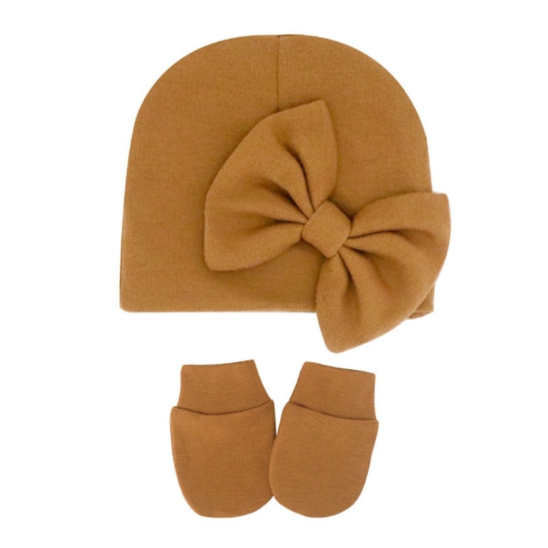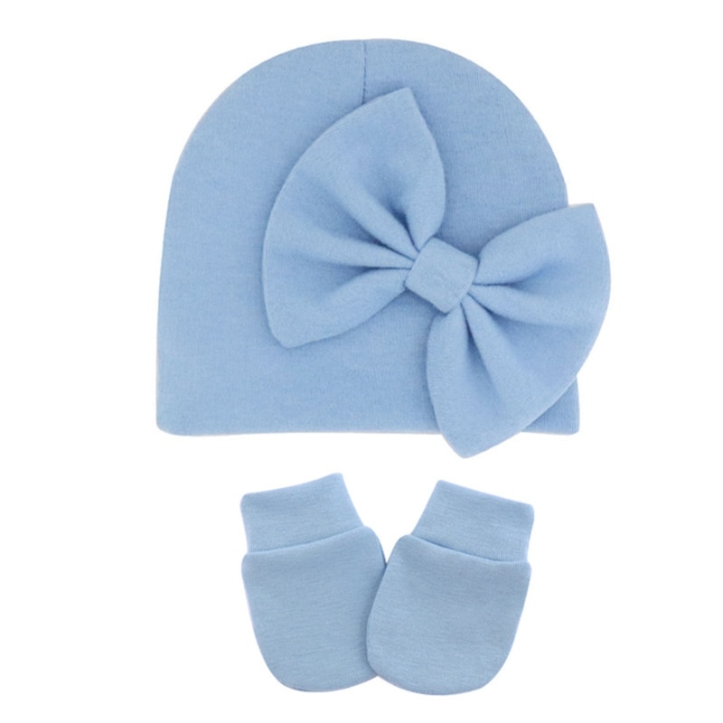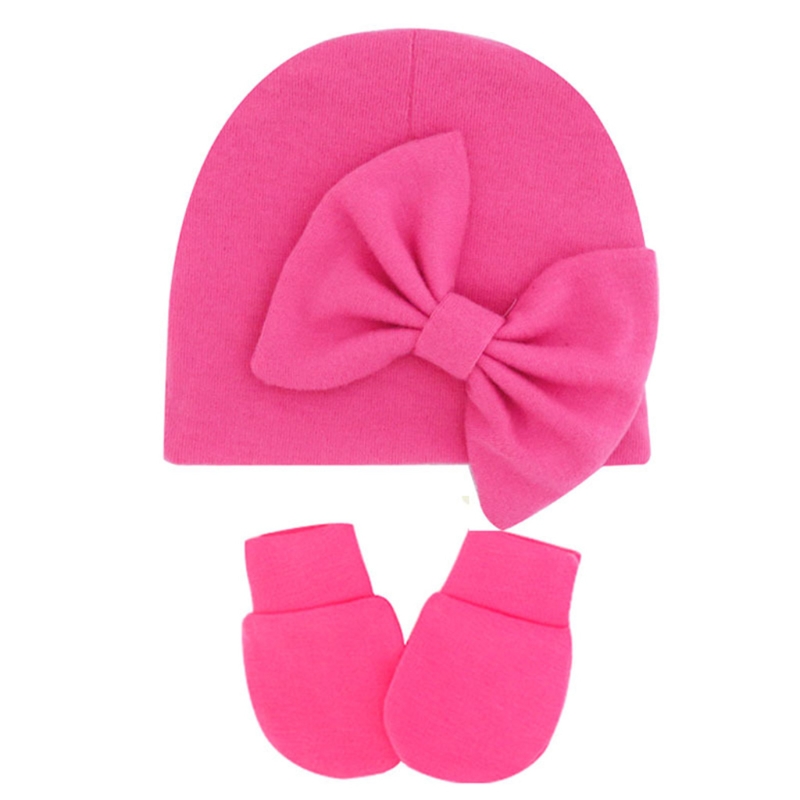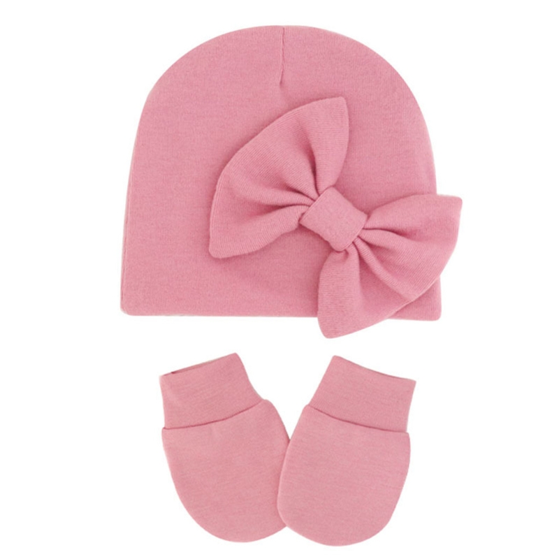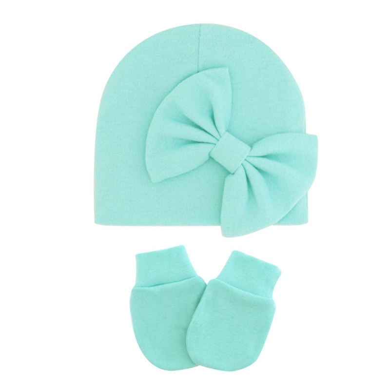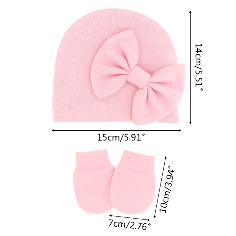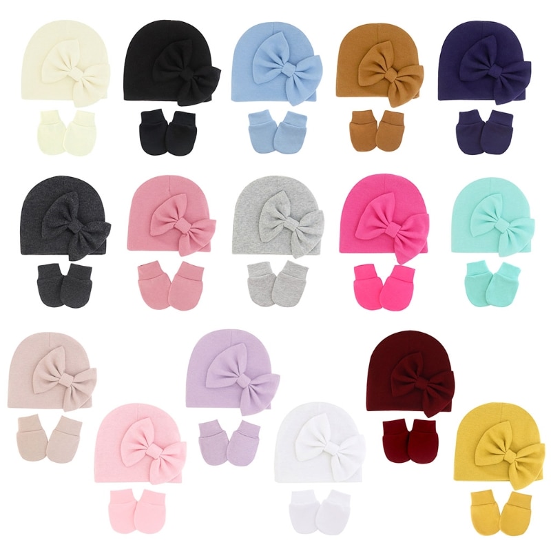 11UC Набор перчаток для новорожденных Beanie Hat Детские варежки с бантом Комплект Теплые хлопковые перчатки для младенцев
