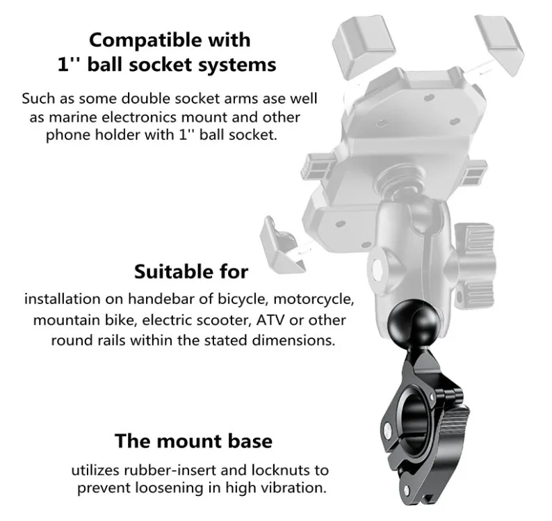 1 "крепление на руль мотоцикла с шаровой головкой и U-образным болтом