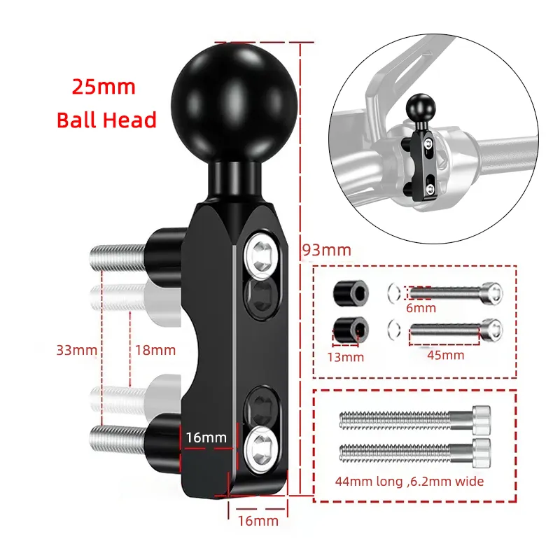 Размер: диаметр шаровой головки 17 мм (0,67 дюйма),25 мм (1 дюйм)