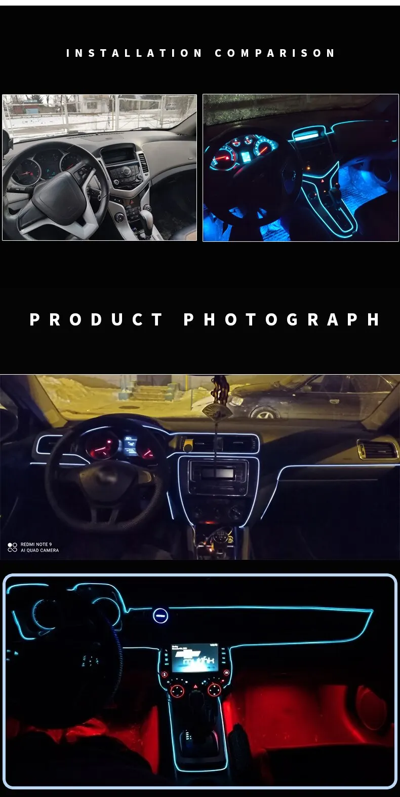 1 м 3 м 5 м Автомобильная интерьерная светодиодная декоративная лампа EL проводка неоновая полоса для Авто DIY Гибкая окружающая светильник USB вечерние атмосфера