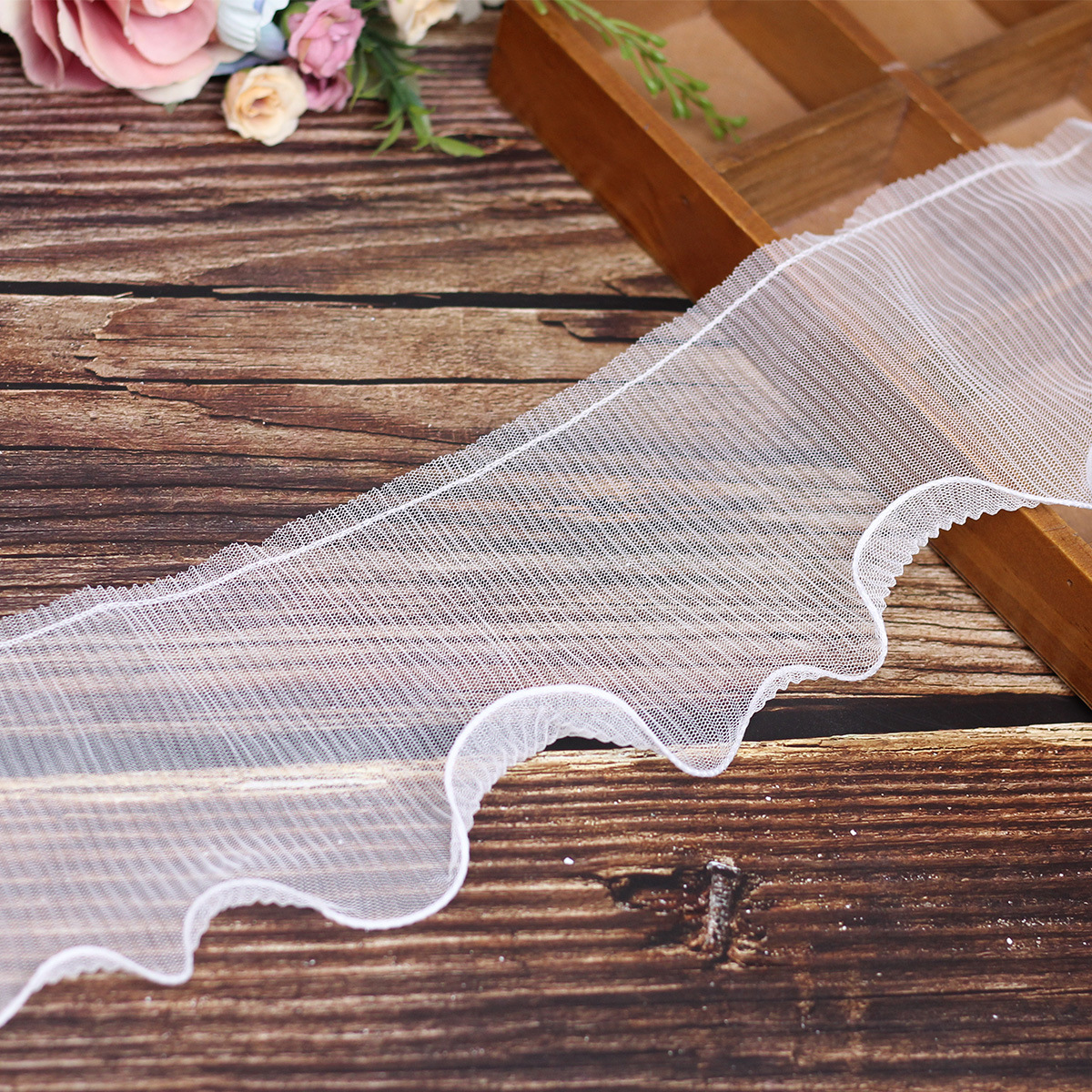 1 м Новая плиссированная гипюровая кружевная отделка свадебное платье 12 см лента белая кружевная ткань принадлежности Текстиль для платьев швейное украшение YU43