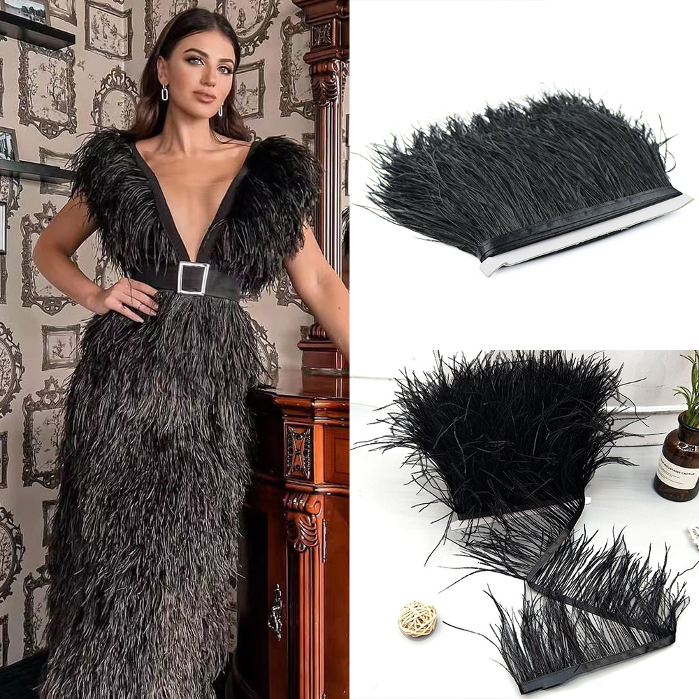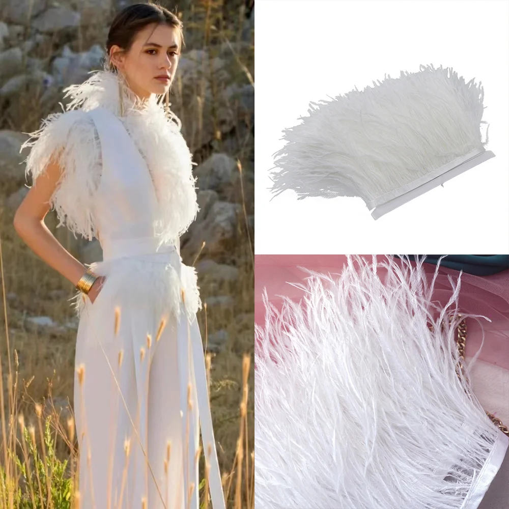 1 метр белые страус-перья отделка бахрома 8-10 см натуральные племенные ленты для свадебных платье