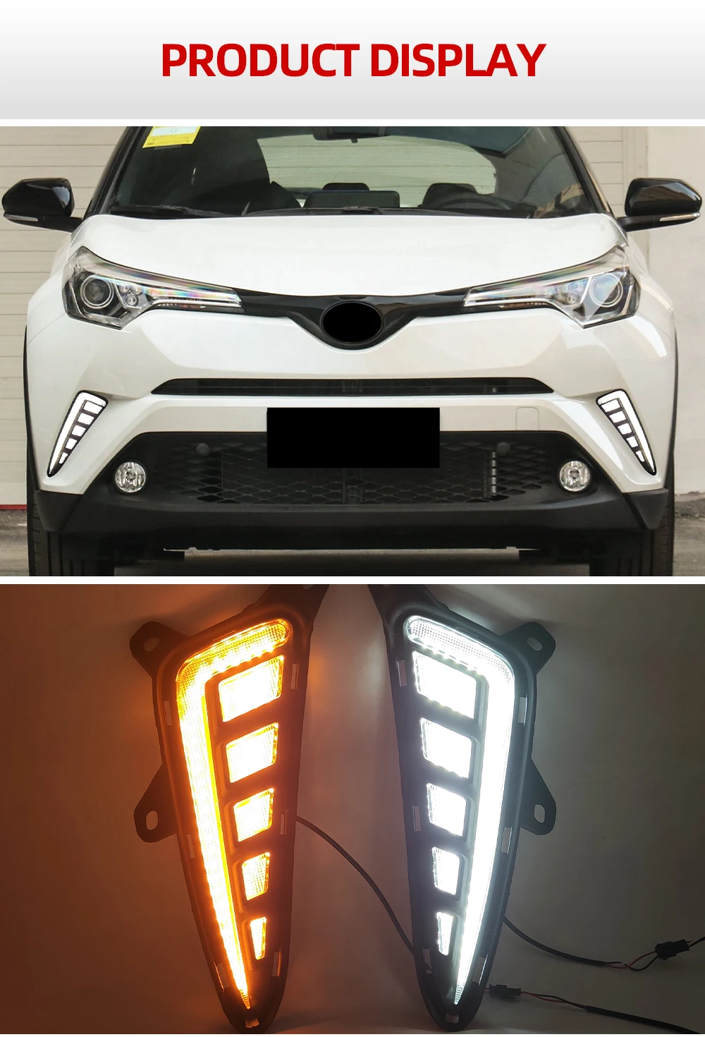 1 набор, Автомобильный светодиодный DRL Дневной светильник для Toyota C-HR ЧР 2016 2017 2018 2019 с динамическим желтый указатель поворота противотуманная фара