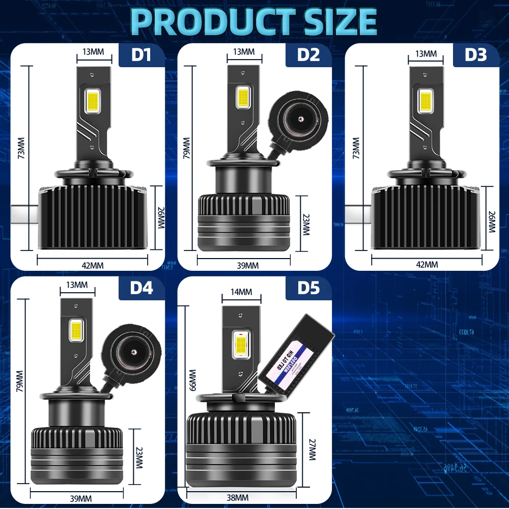1 Pair D1S D3S Led Bulbs Headlight Canbus D4S D5S D2S Auto Lamps 110W 40000LM Super Bright D1R D4R D2R D3R Car Lights HID