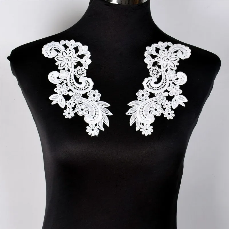 1 пара вышивка декольте Воротник Аппликация отделка шитье белая кружевная ткань DIY женский модный аксессуар Скрапбукинг BW056
