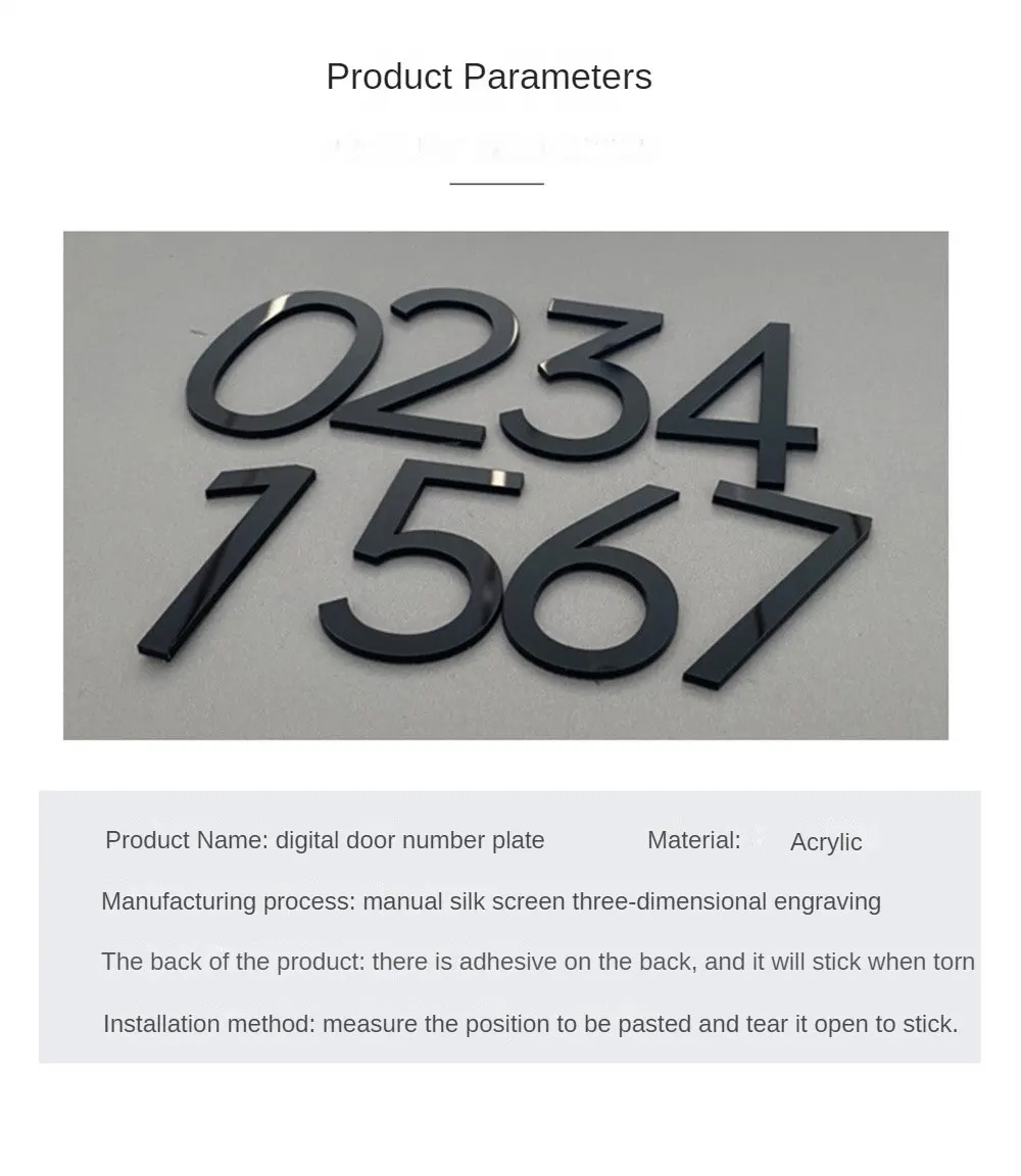 1 шт. 3D цифры на дверь, табличка для дома, ящика, знак, обшивка ворот, цифры от 0 до 9, глянцевая бирка с цифрами, наклейка для отеля, дома, адрес, дверная пластина