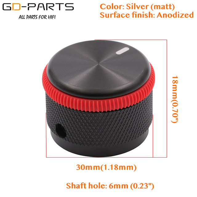 1 шт., алюминиевая ручка потенциометра с красным резиновым кольцом, 0,23 дюйма, 6 мм