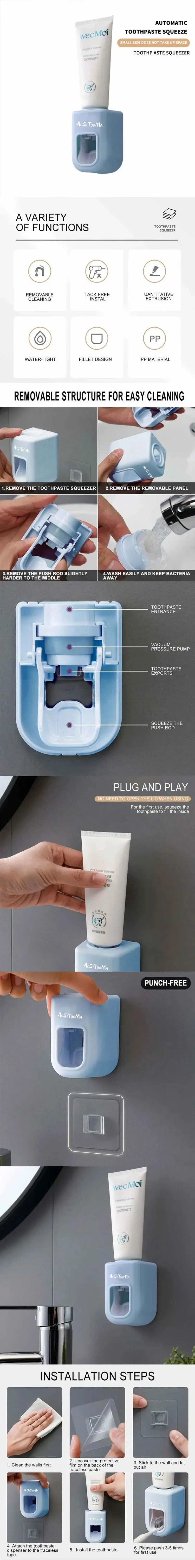 • Автоматическая зубная паста Соковыжималка :Соковыжималка для зубной пасты автоматически дозирует зубную пасту, что делает ее простой и удобной в использовании.