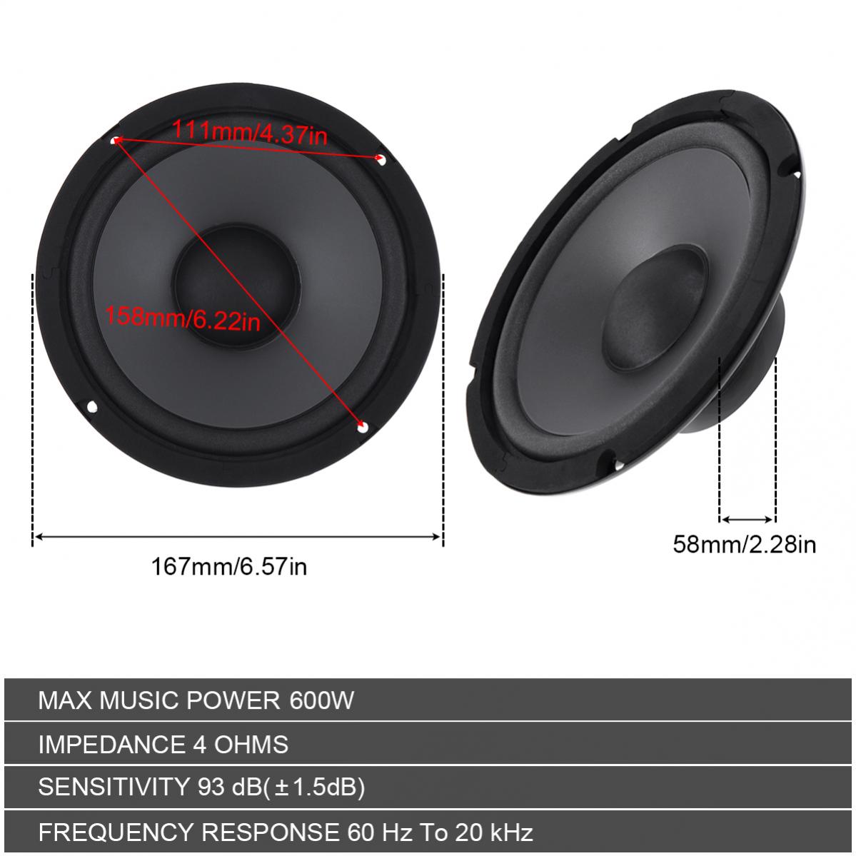 1 шт., Автомобильные колонки 6,5 дюйма, 600 Вт