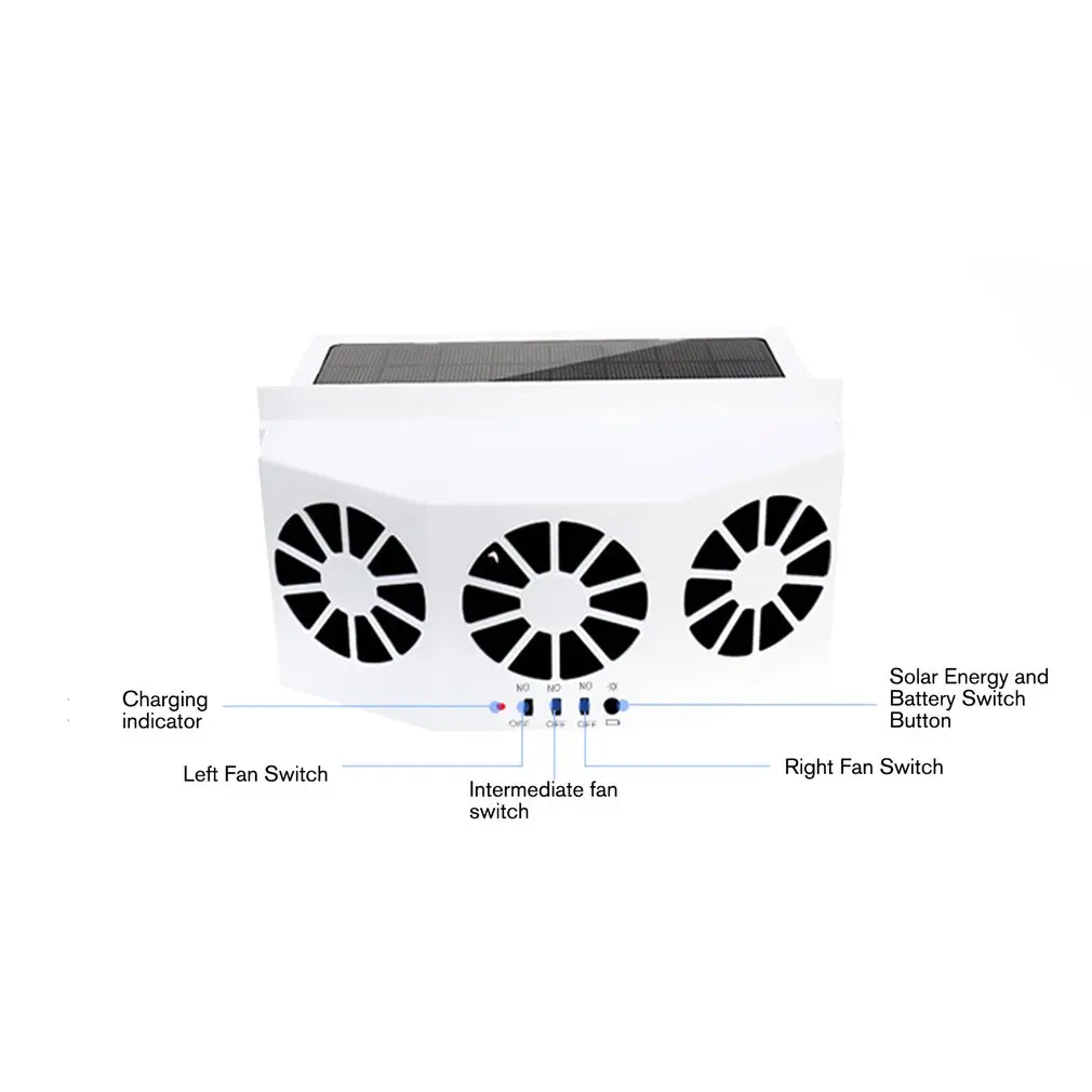 1 шт., автомобильный вентилятор на солнечной батарее, 3 кулера