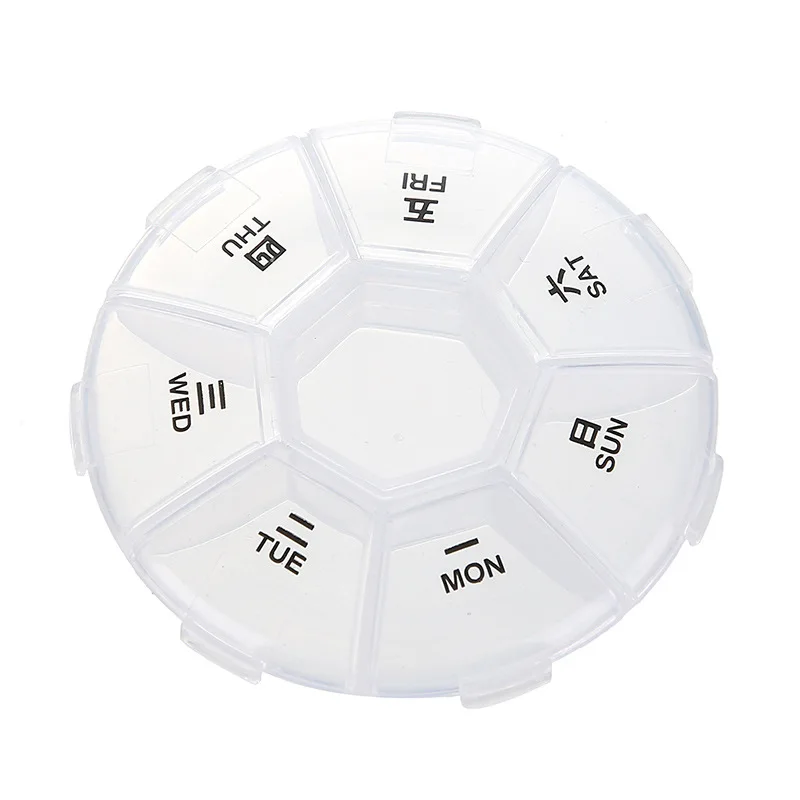 Высококачественная пластиковая коробка для таблеток позволяет легко видеть таблетки или вкладки.