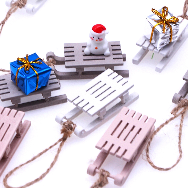1 шт., Деревянный Мини-санях, Подарочная коробка, модель, лыжная доска, миниатюрная мебель «сделай сам», Рождественский пейзаж для 1/12, аксессуары для кукольного домика, декор для кукольного домика