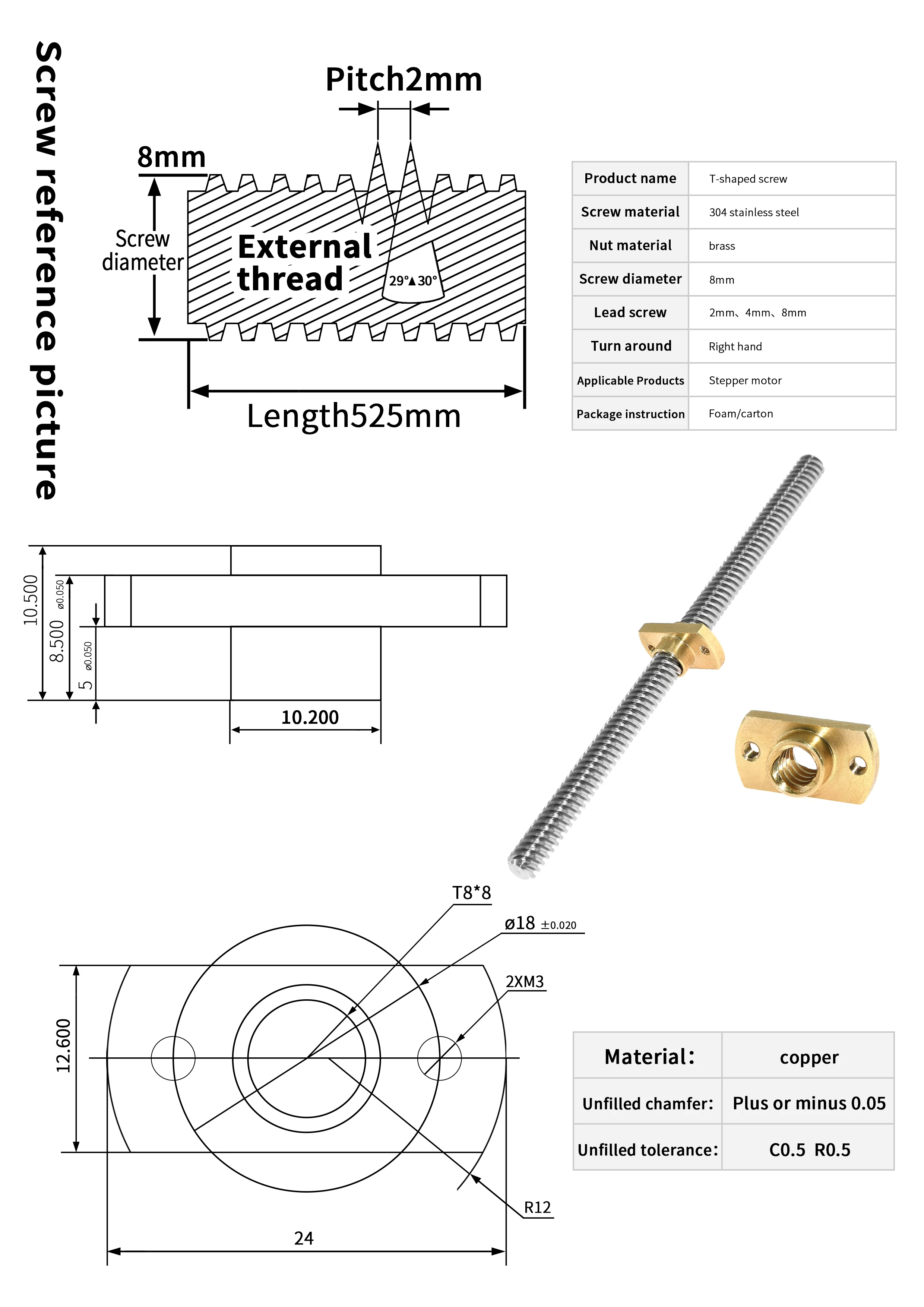 Номер модели T8 screw POM nut/T8 screw brass nut