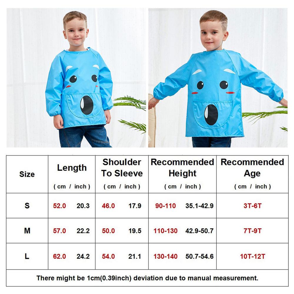 4. 【Широкий спектр использования】 Широкий спектр использования. Smock Toddler можно использовать для рисования, письма, приготовления пищи, рисования, поделок и водных объектов в школе или дома. Его также можно использовать как нагрудник для кормления.