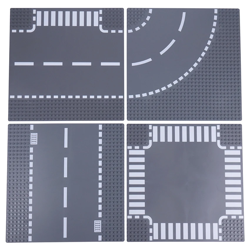1 шт. городские дорожные уличные строительные блоки базовые пластины дорожная плита прямые Перекрещенные кривые блоки игрушки базовые пластины игрушки для детей подарок