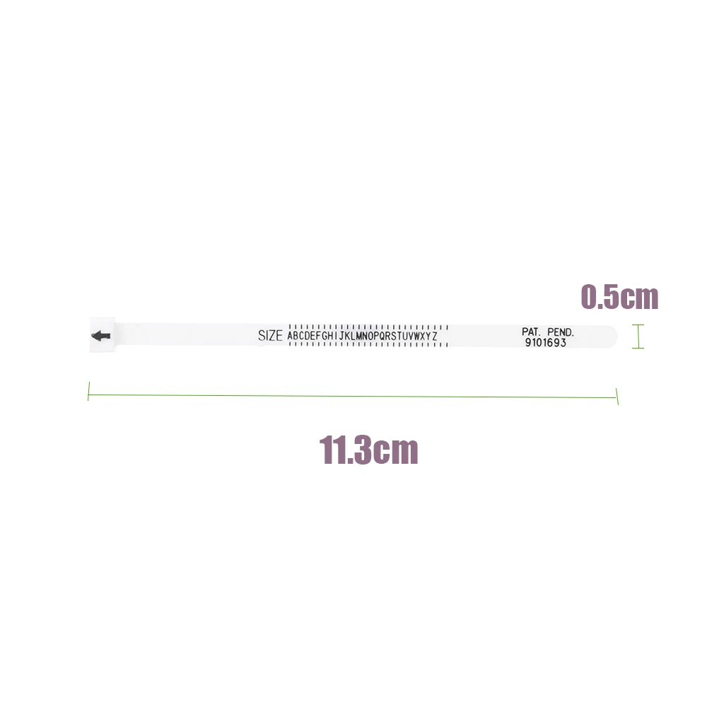 Повод: Повседневная жизнь изделие: кольцевой прибор измерение Цвет: белый размер: американские размеры 1-17; Британские размеры A-Z Материал: пластик Размер: 11,3*0,5 см Особенности на 100% абсолютно новый и высококачественный специальный дизайн и уникальная структура, Популярный товар, легко собрать и многофункциональный супер ювелирные инструменты, которые вы можете измерить размер ваших пальцев, это может быть лучшим подарком для ваших друзей и любимых «многоразовый» работает как пояс. Просто протолкните конец через пряжку, чтобы образовать форму кольца. Нанесите размер на палец. Отрегулируйте, чтобы придать удобную посадку, проверяя, что он просто скользит сзади по суставу пальца. При достижении наилучшей посадки зачитывайте размер, указанный стрелкой.''