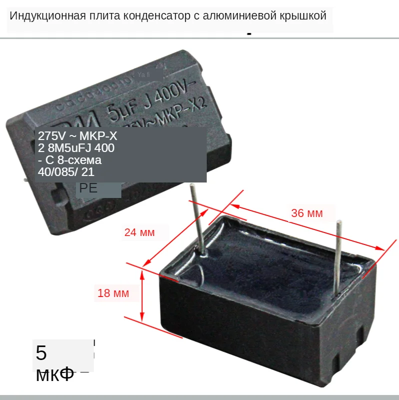 Конденсатор индукционной плиты 275V-400V 5 мкФ