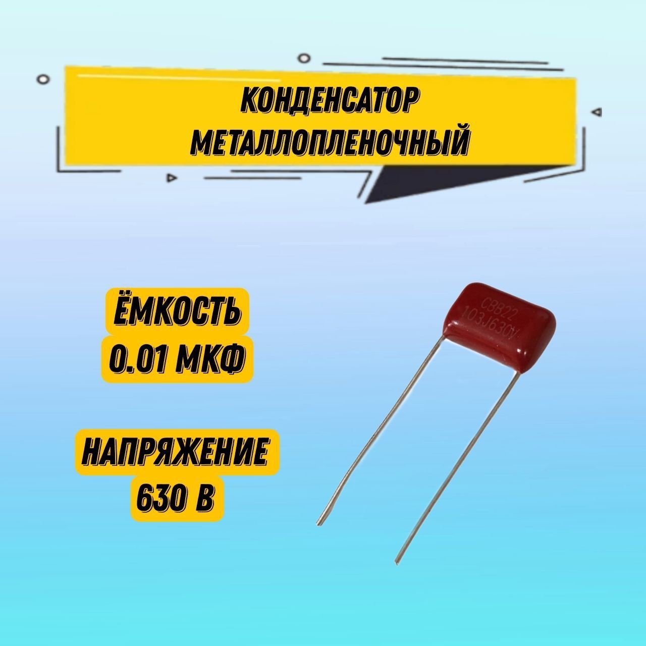 1 шт Конденсатор металлопленочный CBB22 630V 103J 0.01 мкФ 1.1x0.7x0.4 см