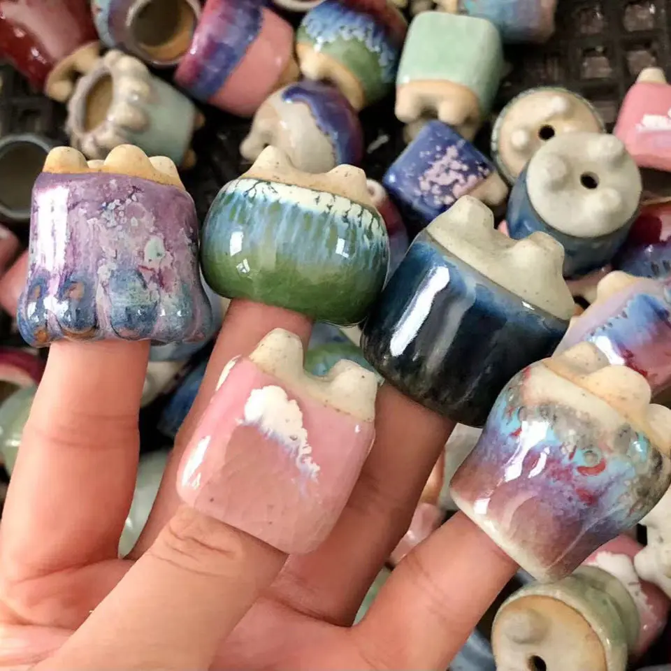 1 шт. Мини цветочный горшок с большим пальцем, супер милый маленький цветочный горшок для растений, домашний сад, мини бонсай для посадки, случайный цвет и форма