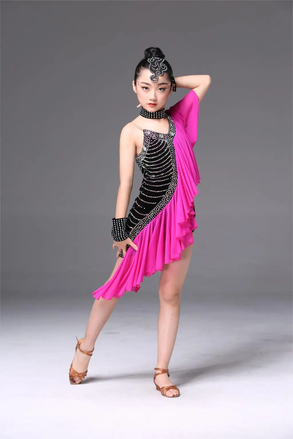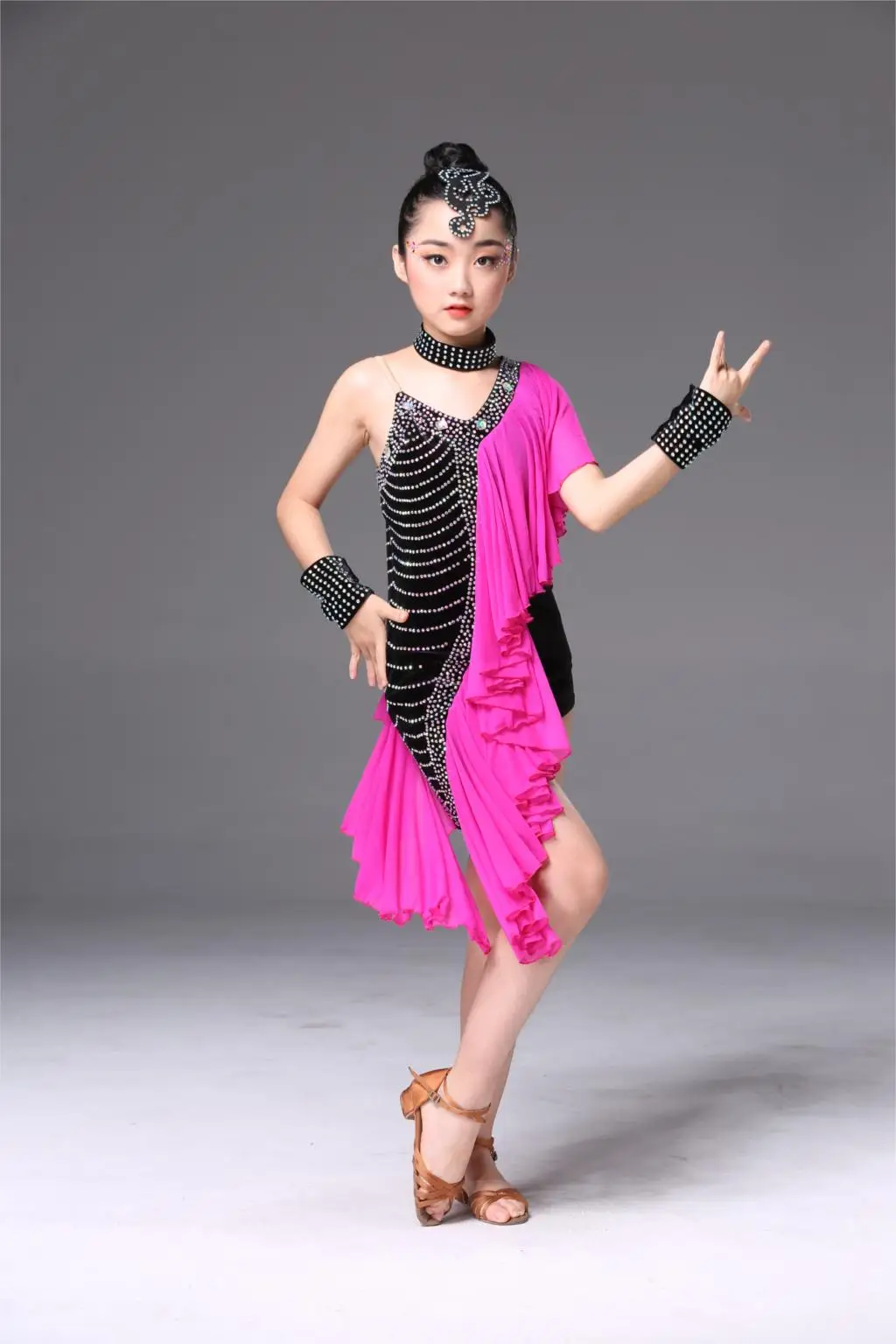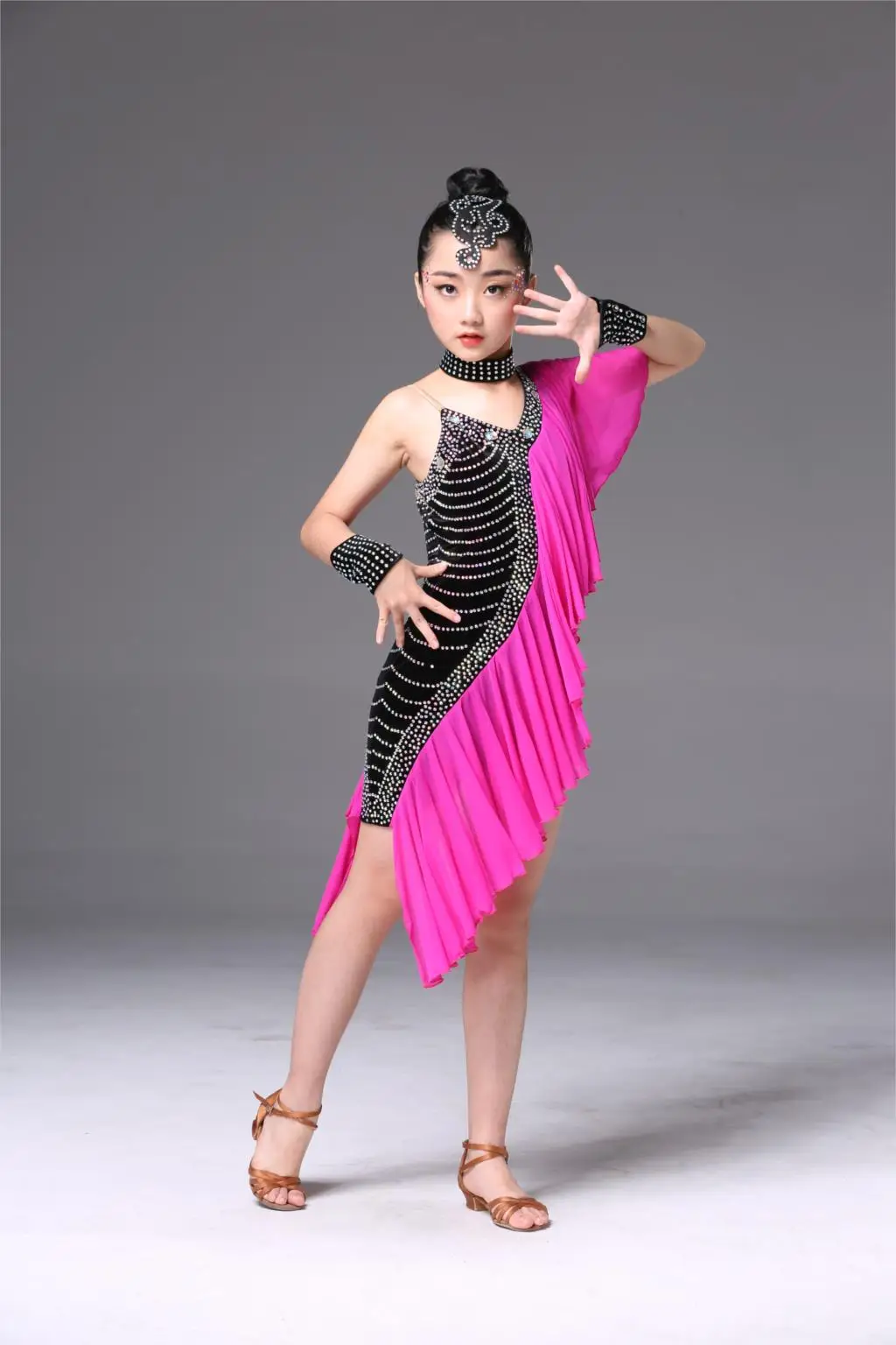 1 шт./партия; детское платье для латинских танцев с блестками; танцевальные костюмы с кисточками для девочек; милое креативное платье для выступлений