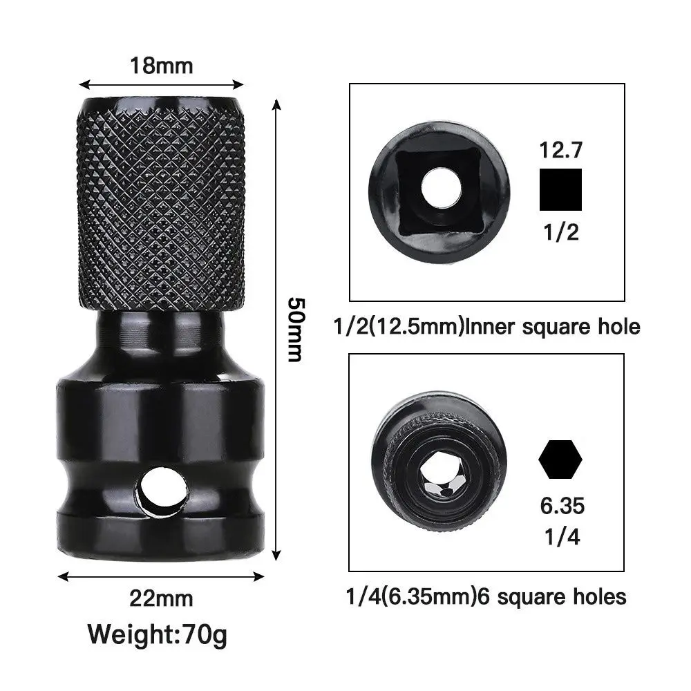 1. Адаптер гнезда гаечного ключа может преобразовать 1/2 дюймовый ударный гайковерт в 1/4 дюймовую шестиугольную ручную систему быстрой загрузки бит, преобразовать воздушный или мощный ударный ключ в сверло и Трещоточный ключ в отвертку.