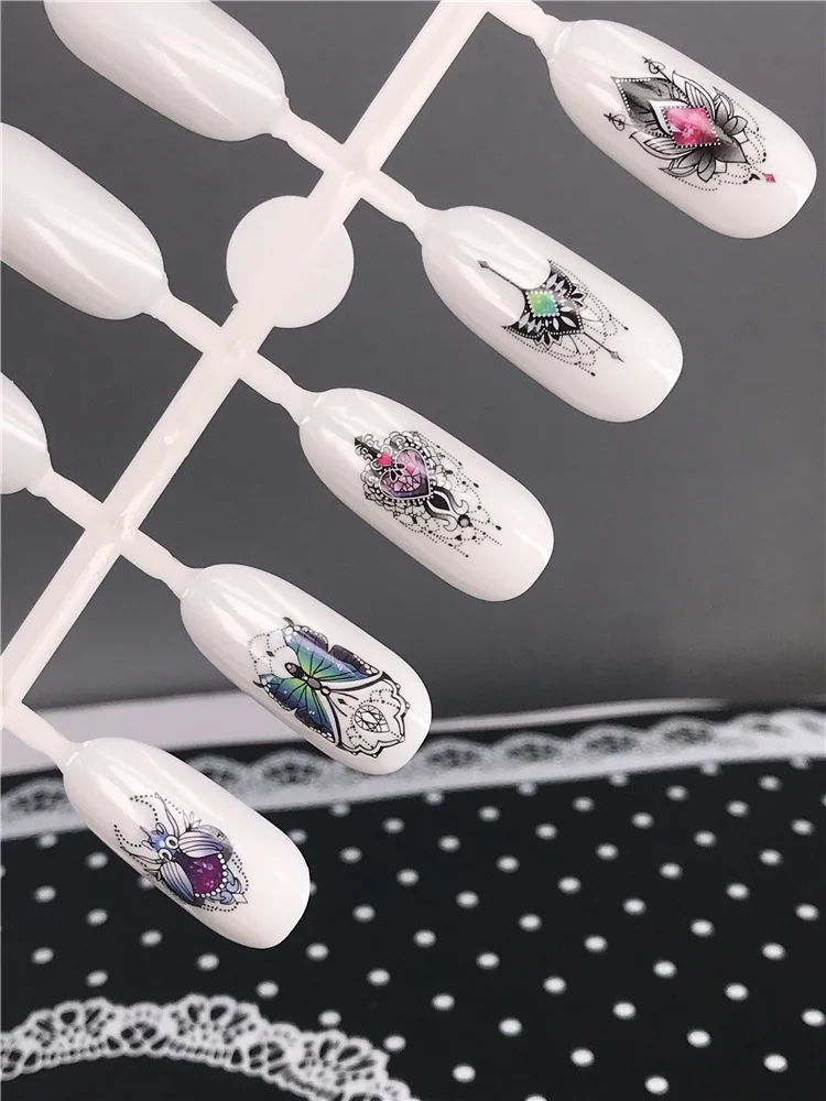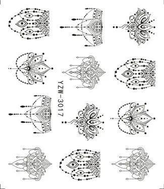 Спецификация: Тип: водные наклейки для ногтей Размер: 6,4 см * 5,2 см Количество: 1 Лист наклейки для ногтей Посылка Содержимое: 1 Лист наклейки для дизайна ногтей DIY наклейки для ногтей Как использовать: 1. Triming, очистить и полировать ногти, покрасить цвет фона на ногти и высушить его. 2. Снимите пленку продукта, Вырежьте похлопыватель и погрузите ее в воду 10-20 секунд. 3. Смочите ногти, приклейте Паттер в положение. 4. Промойте воду бумажным полотенцем и высушите. 5. Крышка с прозрачным лаком для ногтей и высушить.