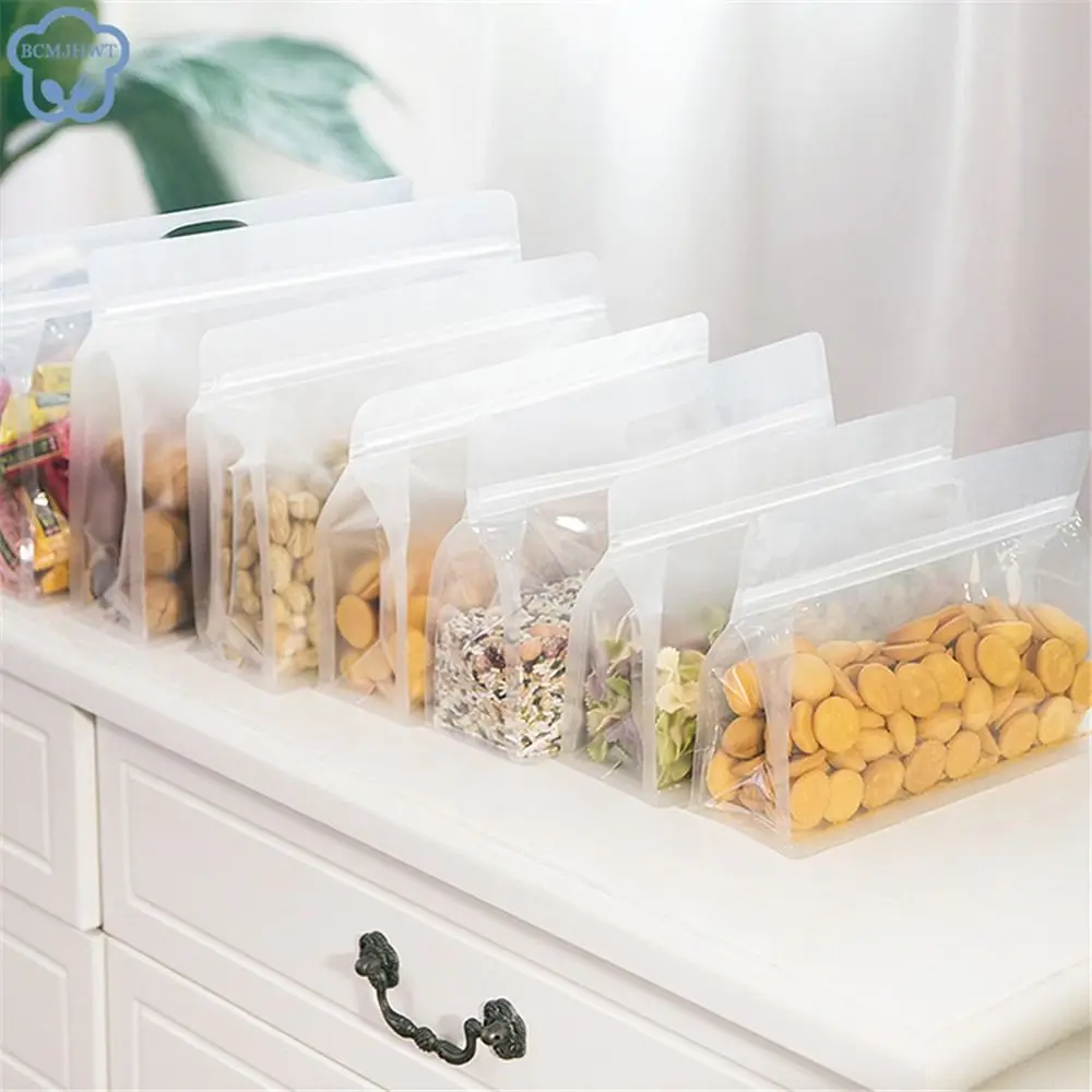 Новинка и высокое качество Подходит для хранения фруктов, овощей, цветов. Его хорошая герметизация и влагонепроницаемость, хранение в течение длительного времени. Материал EVA, безопасность качества, может быть охлажден. Укуса уплотнительная лента, свежий и защита от запаха, имеют длительное хранение. Материал: ПЭТ Цвет: матовый, прозрачный Размер: 24x17 + 8 см, 26x19 + 8 см, 28x21 + 8 см 30x23 + 8 см Посылка включает в себя: 1 х многоразовый пакет для хранения еды