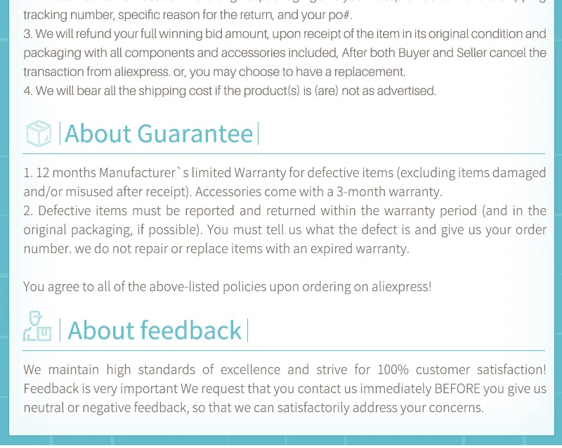 3. Если у вас есть какие-либо вопросы, пожалуйста, свяжитесь с нами вовремя, мы дадим вам удовлетворительный ответ, пожалуйста, не открывайте споры по желанию, спасибо за сотрудничество.