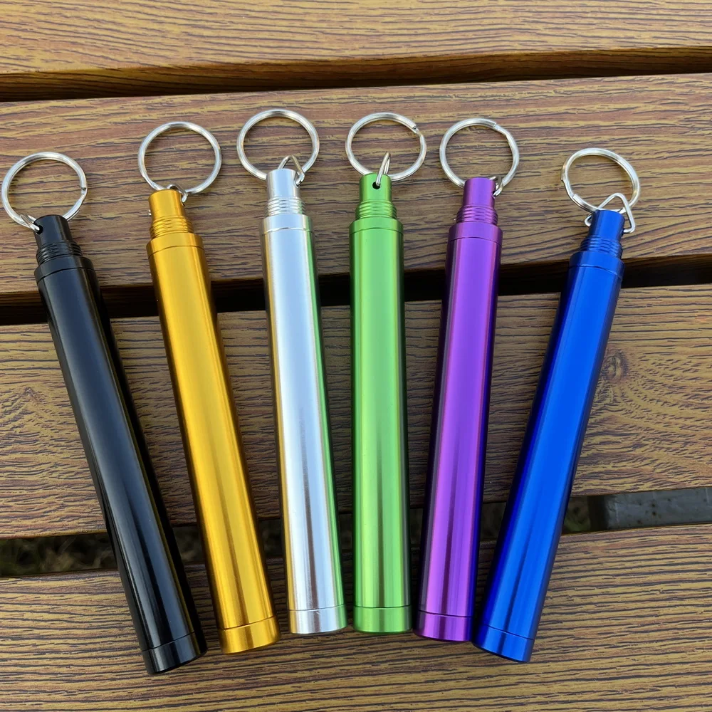 1 шт., трубка для хранения из алюминиевого сплава, металлическая трубка для хранения, трубка для сигар, водонепроницаемая герметичная трубка с защитой от падения и цепочкой для ключей