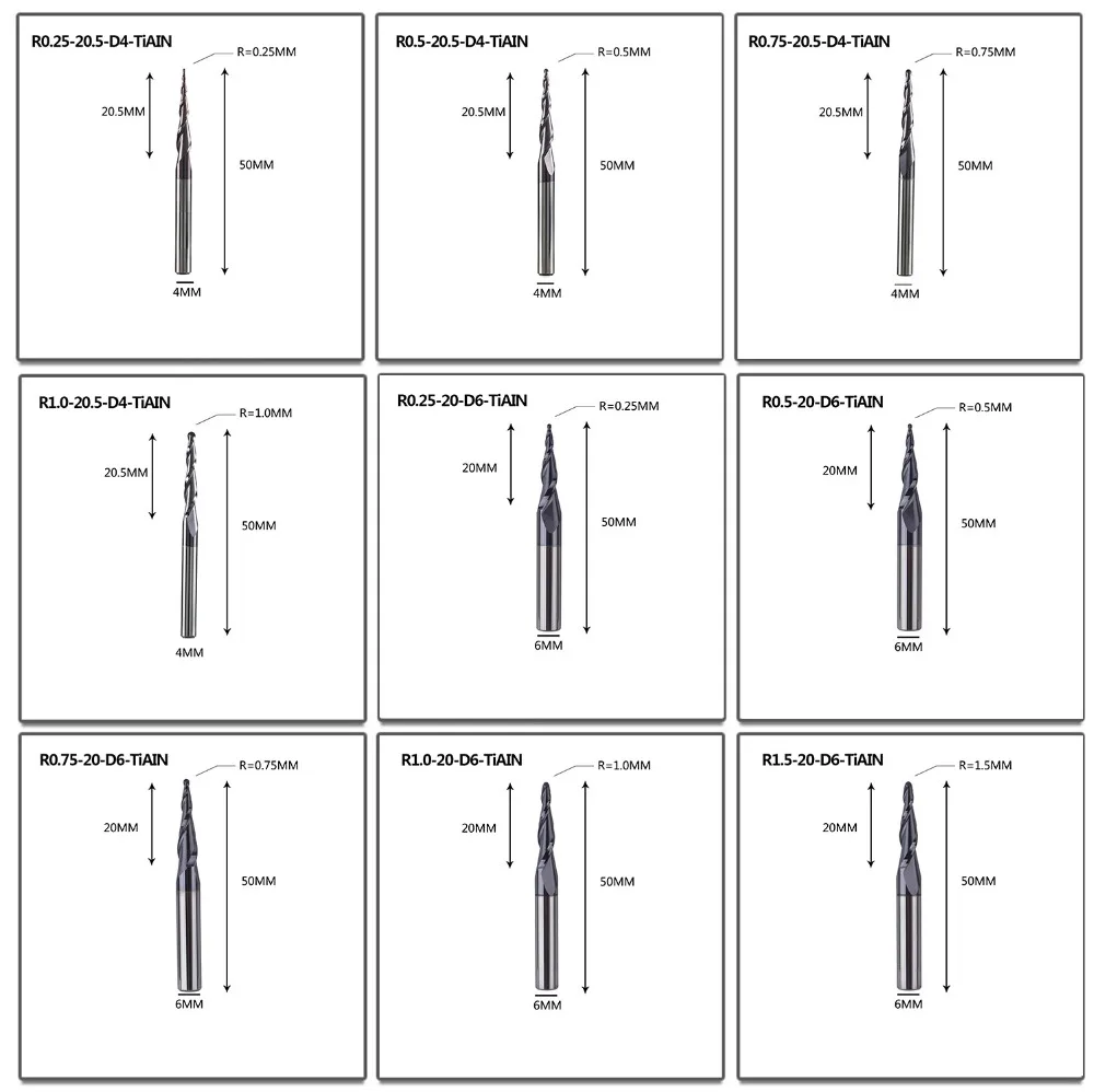 1 шт. вольфрамовый твердый карбид с покрытием конический шариковый Нос фрезерные станки с ЧПУ фрезы для дерева и резцы для металлической концевой фрезы