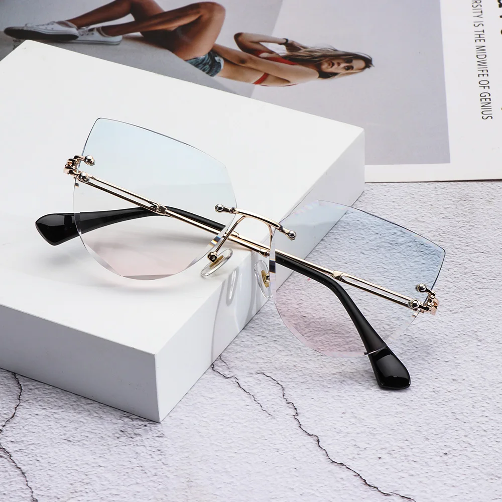 1 шт., женские солнцезащитные очки кошачий глаз без оправы