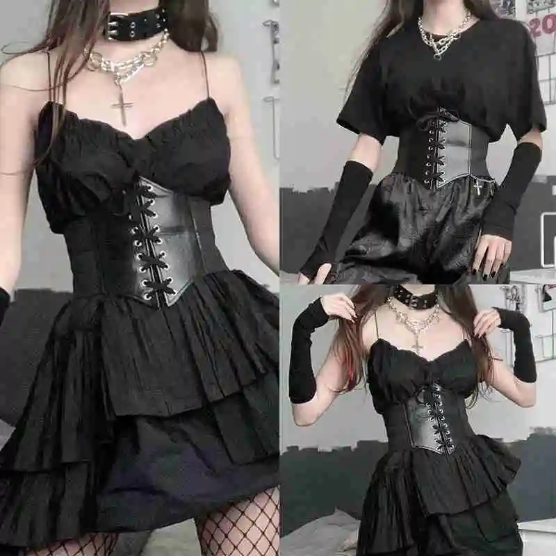 Готический, темный, на шнуровке, женский, пояс-корсет широкий из искусственной кожи, ремни, женская мода, пояс для похудения, регулируемое платье, декорированный пояс, укороченный топ