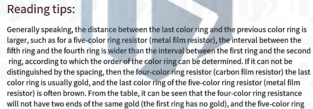 Примечание.Цвет резисторов только для справки, он может отличаться от реального товара, надеемся на ваше понимание.